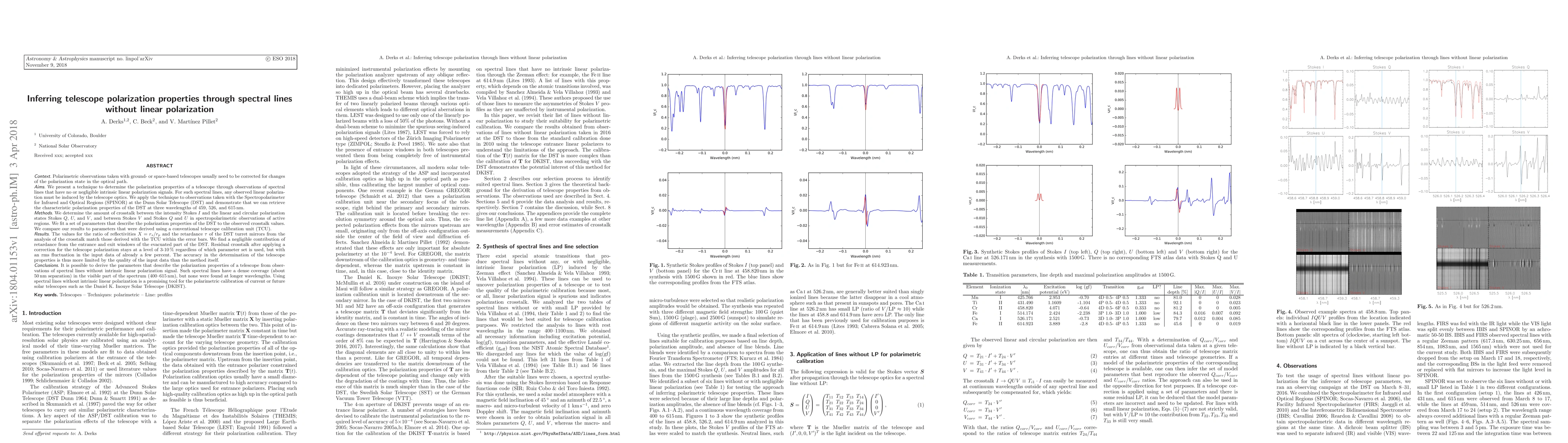 This paper introduces a method to infer the polarization properties of a telescope using spectral lines devoid of intrinsic polarization, demonstrating its application with the SPINOR telescope. The technique successfully retrieves the polarization characteristics at three specific wavelengths, showing potential for future solar telescope calibration.
