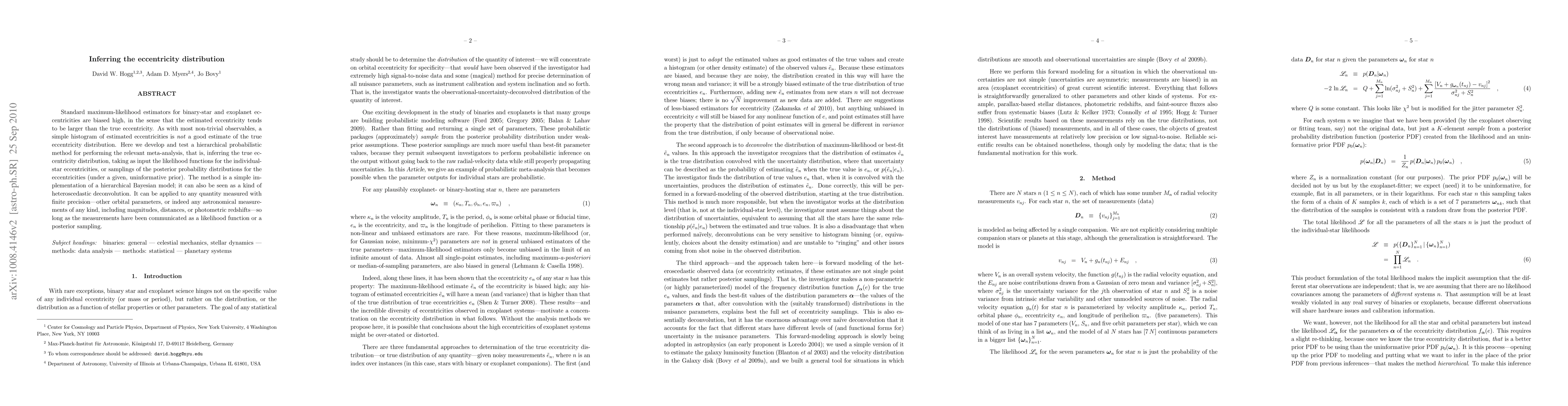 This paper proposes a hierarchical Bayesian method to accurately infer the true eccentricity distribution of binary stars and exoplanets, correcting for the bias in standard maximum-likelihood estimators. The method can be applied to any astronomical measurements provided as likelihood functions or posterior samplings.