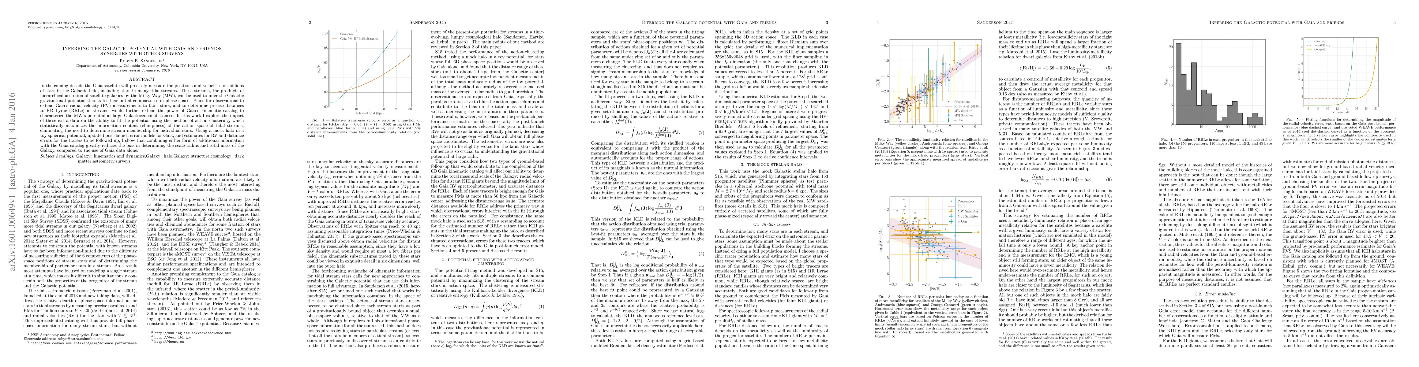In the coming decade the Gaia satellite will precisely measure the positions and velocities of millions of stars in the Galactic halo, including stars in many tidal streams. These streams, the products of hierarchical accretion of satellite galaxies by the Milky Way (MW), can be used to infer the Galactic gravitational potential thanks to their initial compactness in phase space. Plans for observations to extend Gaia's radial velocity (RV) measurements to faint stars, and to determine precise distances to RR Lyrae (RRLe) in streams, would further extend the power of Gaia's kinematic catalog to characterize the MW's potential at large Galactocentric distances. In this work I explore the impact of these extra data on the ability to fit the potential using the method of action clustering, which statistically maximizes the information content (clumpiness) of the action space of tidal streams, eliminating the need to determine stream membership for individual stars. Using a mock halo in a toy spherical potential, updated post-launch error models for Gaia, and estimates for RV and distance errors for the tracers to be followed up, I show that combining either form of additional information with the Gaia catalog greatly reduces the bias in determining the scale radius and total mass of the Galaxy, compared to the use of Gaia data alone.