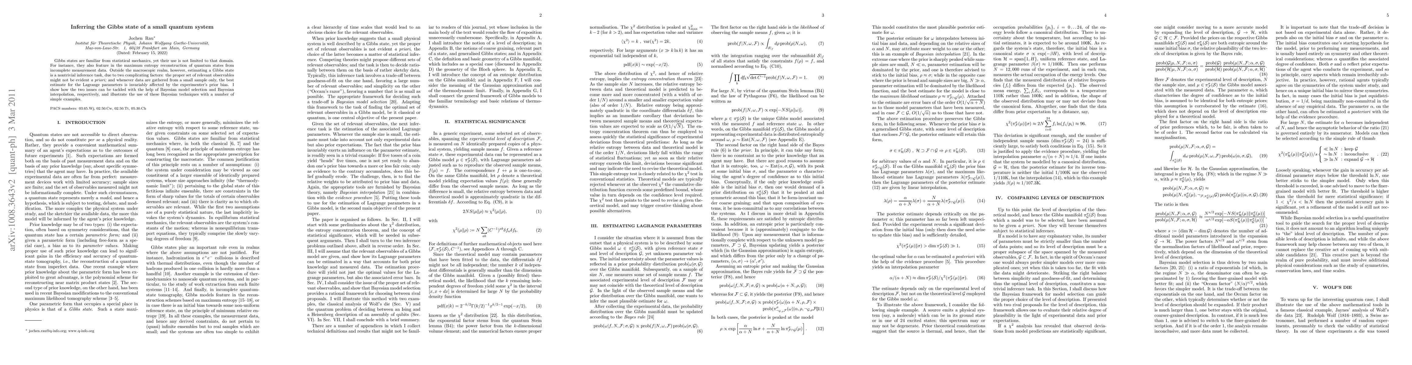 Gibbs states are familiar from statistical mechanics, yet their use is not limited to that domain. For instance, they also feature in the maximum entropy reconstruction of quantum states from incomplete measurement data. Outside the macroscopic realm, however, estimating a Gibbs state is a nontrivial inference task, due to two complicating factors: the proper set of relevant observables might not be evident a priori; and whenever data are gathered from a small sample only, the best estimate for the Lagrange parameters is invariably affected by the experimenter's prior bias. I show how the two issues can be tackled with the help of Bayesian model selection and Bayesian interpolation, respectively, and illustrate the use of these Bayesian techniques with a number of simple examples.