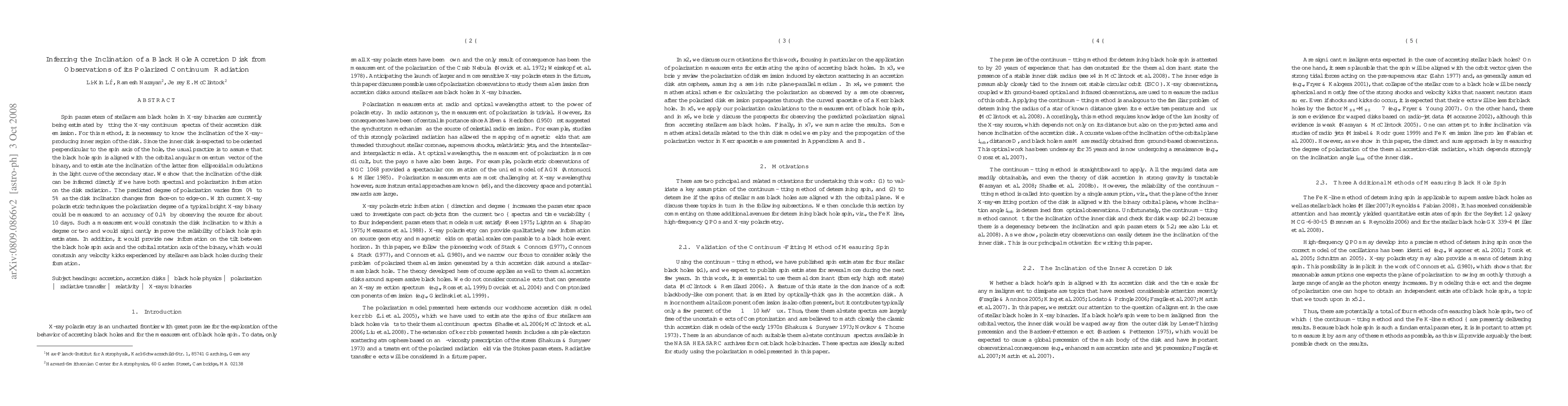 Spin parameters of stellar-mass black holes in X-ray binaries are currently being estimated by fitting the X-ray continuum spectra of their accretion disk emission. For this method, it is necessary to know the inclination of the X-ray-producing inner region of the disk. Since the inner disk is expected to be oriented perpendicular to the spin axis of the hole, the usual practice is to assume that the black hole spin is aligned with the orbital angular momentum vector of the binary, and to estimate the inclination of the latter from ellipsoidal modulations in the light curve of the secondary star. We show that the inclination of the disk can be inferred directly if we have both spectral and polarization information on the disk radiation. The predicted degree of polarization varies from 0% to 5% as the disk inclination changes from face-on to edge-on. With current X-ray polarimetric techniques the polarization degree of a typical bright X-ray binary could be measured to an accuracy of 0.1% by observing the source for about 10 days. Such a measurement would constrain the disk inclination to within a degree or two and would significantly improve the reliability of black hole spin estimates. In addition, it would provide new information on the tilt between the black hole spin axis and the orbital rotation axis of the binary, which would constrain any velocity kicks experienced by stellar-mass black holes during their formation.