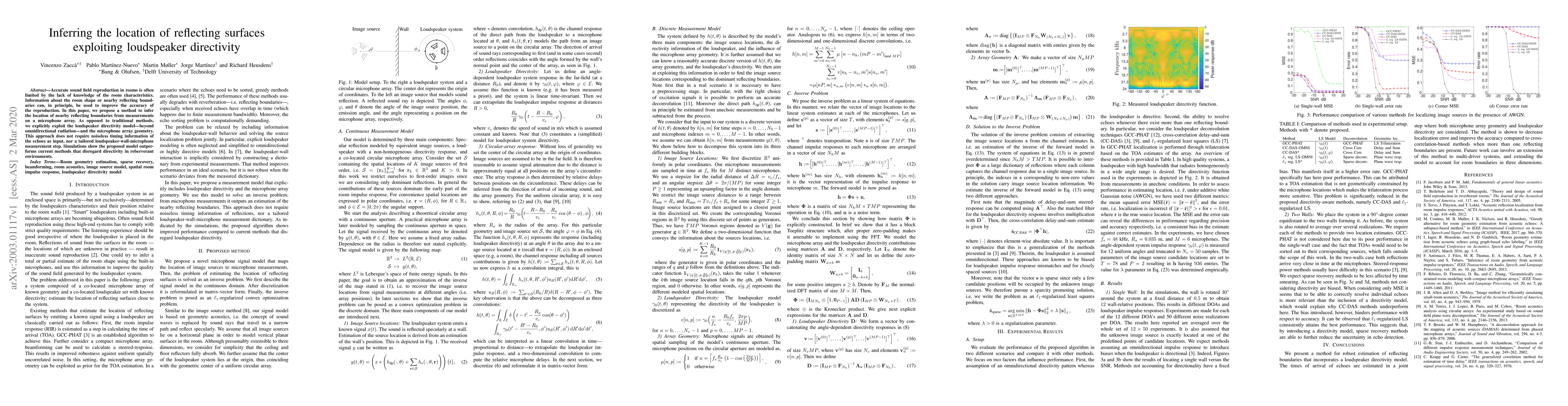 This paper proposes a method to infer the location of reflecting surfaces in a room using loudspeaker directivity and a microphone array, improving sound field reproduction without requiring precise echo timing or tailored measurements. Simulation results show it outperforms existing methods that ignore directivity.