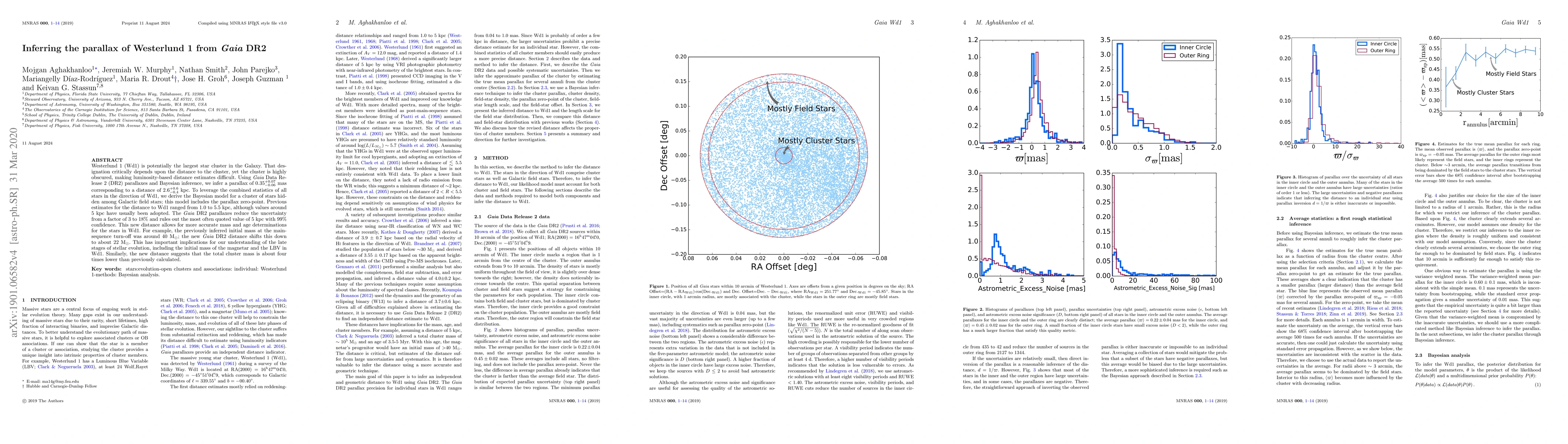 The paper uses Gaia DR2 parallaxes and Bayesian inference to determine the parallax of Westerlund 1, yielding a distance of $2.6^{+0.6}_{-0.4}$ kpc, reducing previous uncertainties by a factor of 18% and ruling out the most common estimate of 5 kpc with 99% confidence. This new distance recalibrates the cluster's mass and age, notably lowering the inferred initial mass of key stars.
