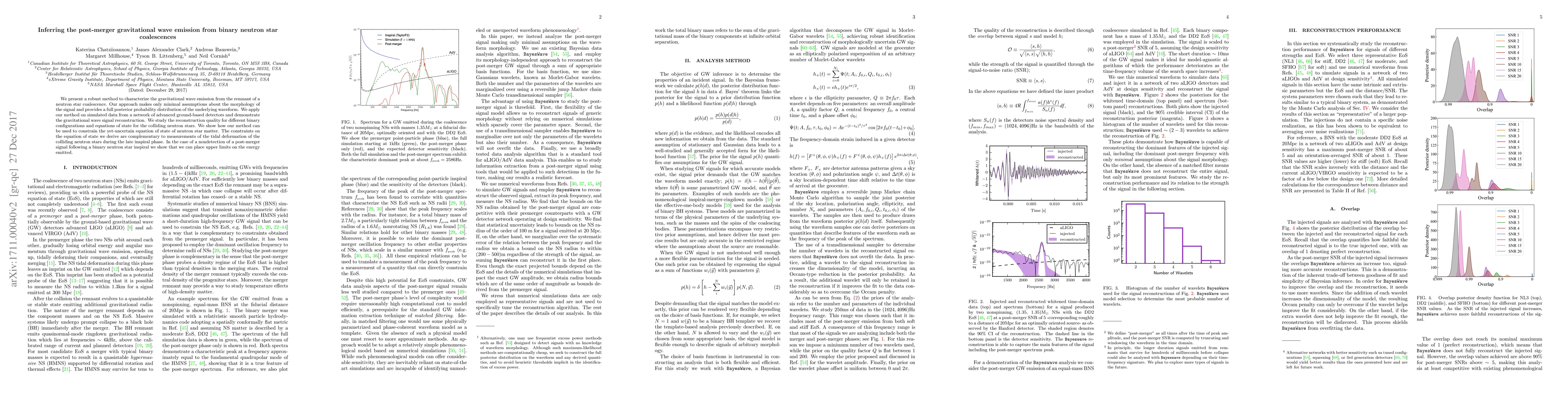 The paper introduces a Bayesian inference method, BayesWave, for reconstructing post-merger gravitational wave signals from binary neutron star coalescences, providing a full posterior distribution of the underlying waveform.