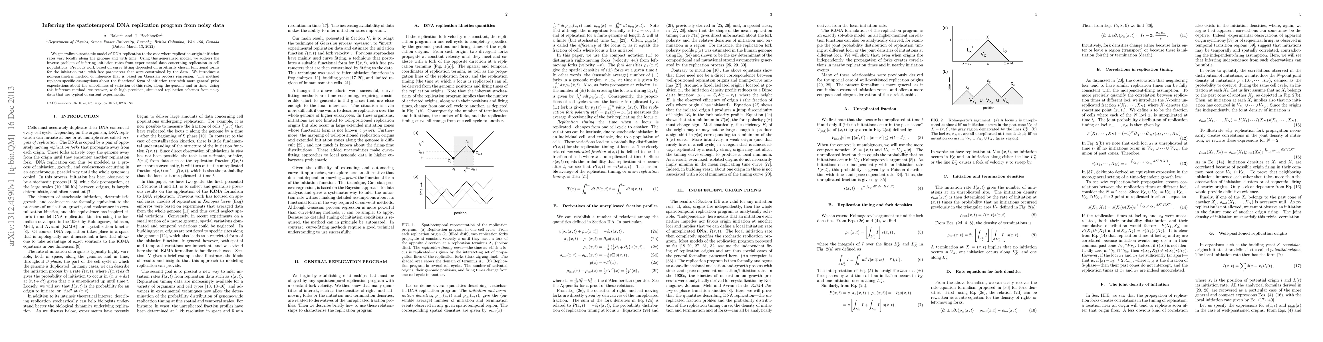 This paper proposes a non-parametric Gaussian process regression method to infer spatiotemporal DNA replication initiation rates from noisy experimental data. Unlike previous curve fitting approaches, this method does not rely on predefined functional forms, instead using general smoothness priors to accurately recover simulated replication schemes from typical experimental noise.