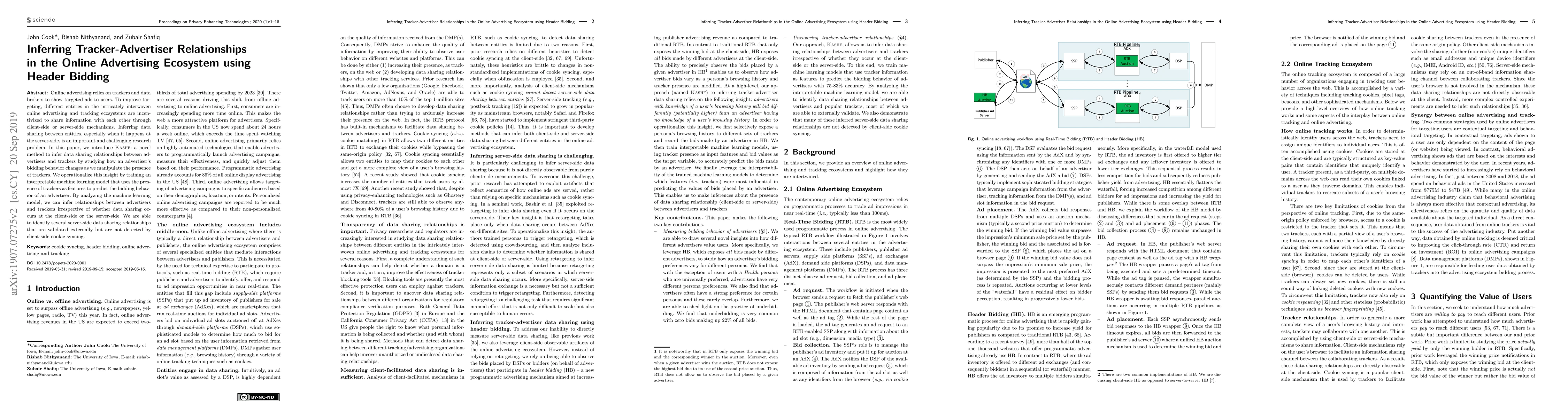 This paper introduces KASHF, a novel method to infer relationships between advertisers and trackers in online advertising by analyzing changes in advertiser bidding behavior when trackers are manipulated. The method uses an interpretable machine learning model to predict bidding behavior and infer data sharing relationships, revealing server-side data sharing not detected by client-side methods.
