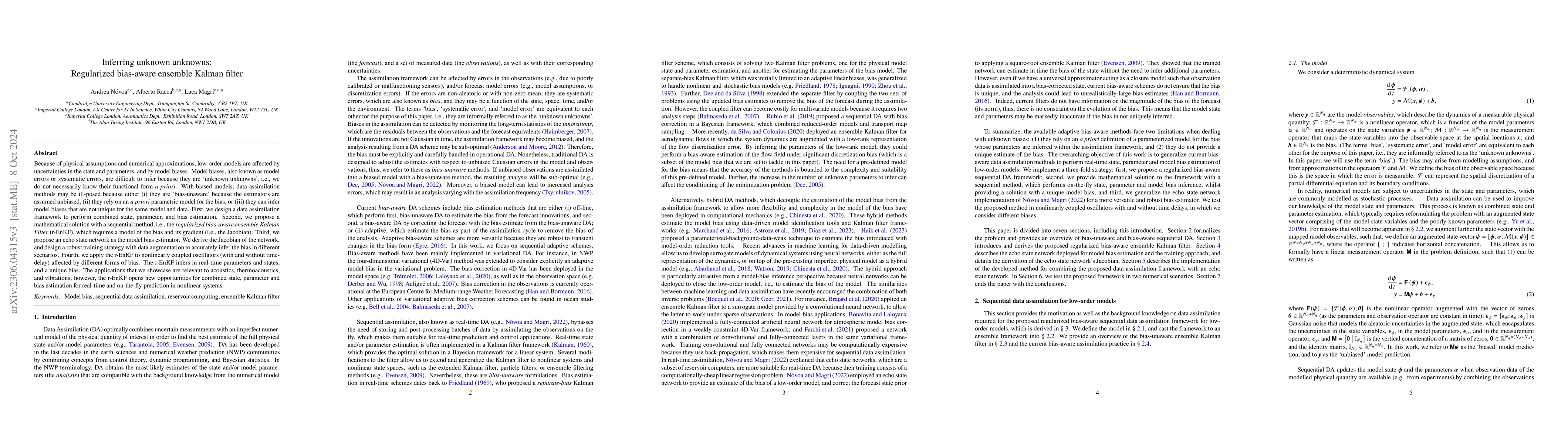 This paper introduces a regularized bias-aware ensemble Kalman Filter (r-EnKF) to address uncertainties and biases in low-order models. It proposes a method for real-time estimation of states, parameters, and model biases, using an echo state network for bias inference and demonstrating its effectiveness on nonlinearly coupled oscillators.