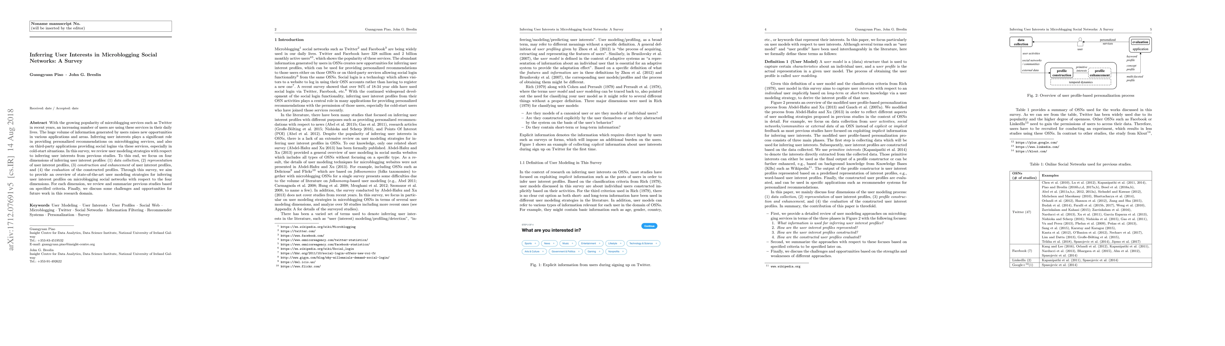 This paper surveys user modeling strategies for inferring user interests in microblogging networks, focusing on data collection, representation, profile construction, and evaluation. It aims to provide an overview of state-of-the-art techniques and discusses challenges and future research opportunities.