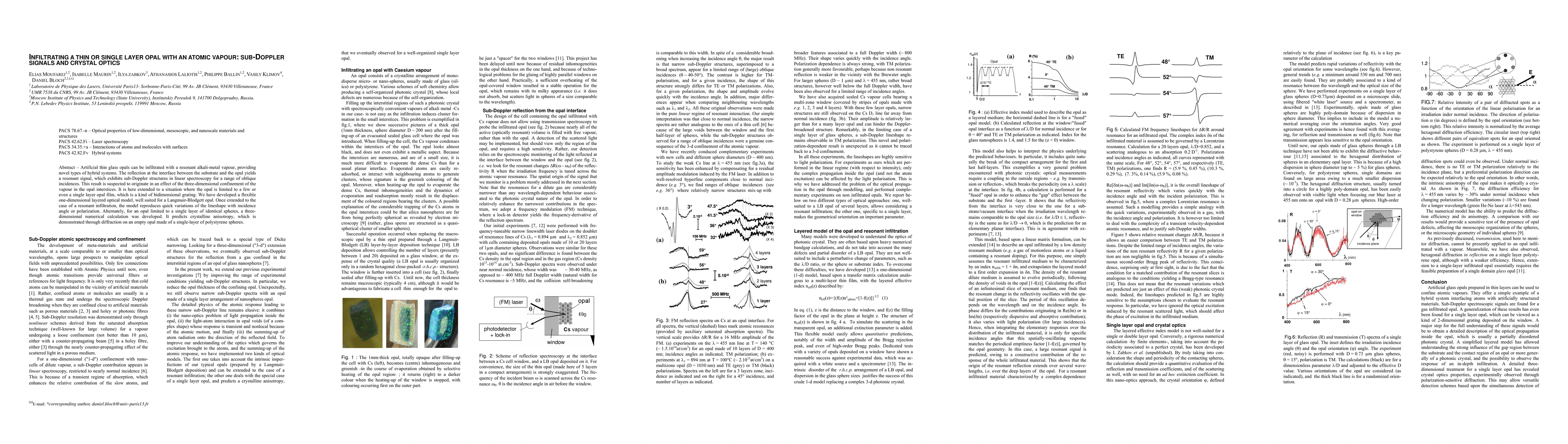 Artificial thin glass opals can be infiltrated with a resonant alkali-metal vapour, providing novel types of hybrid systems. The reflection at the interface between the substrate and the opal yields a resonant signal, which exhibits sub-Doppler structures in linear spectroscopy for a range of oblique incidences. This result is suspected to originate in an effect of the three-dimensional confinement of the vapour in the opal interstices. It is here extended to a situation where the opal is limited to a few or even a single layer opal film, which is a kind of bidimensional grating. We have developed a flexible one-dimensional layered optical model, well suited for a Langmuir-Blodgett opal. Once extended to the case of a resonant infiltration, the model reproduces quick variations of the lineshape with incidence angle or polarization. Alternately, for an opal limited to a single layer of identical spheres, a three-dimensional numerical calculation was developed. It predicts crystalline anisotropy, which is demonstrated through diffraction on an empty opal made of a single-layer of polystyrene spheres.
