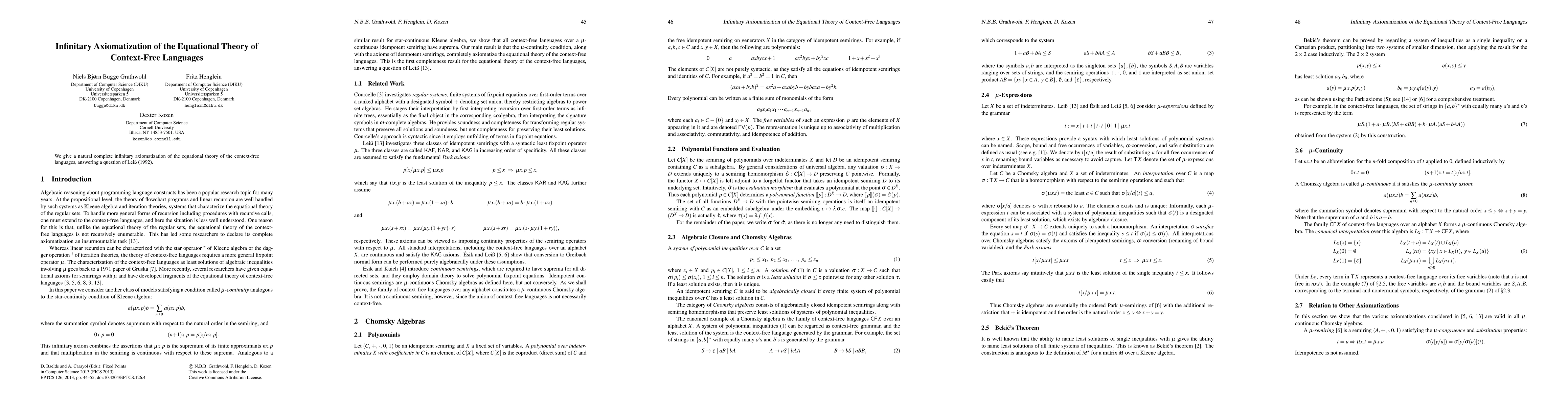 Researchers develop a complete infinitary axiomatization for context-free languages, resolving a 1992 question on the equational theory of these languages. This achievement provides a foundation for understanding the structural properties of context-free languages.