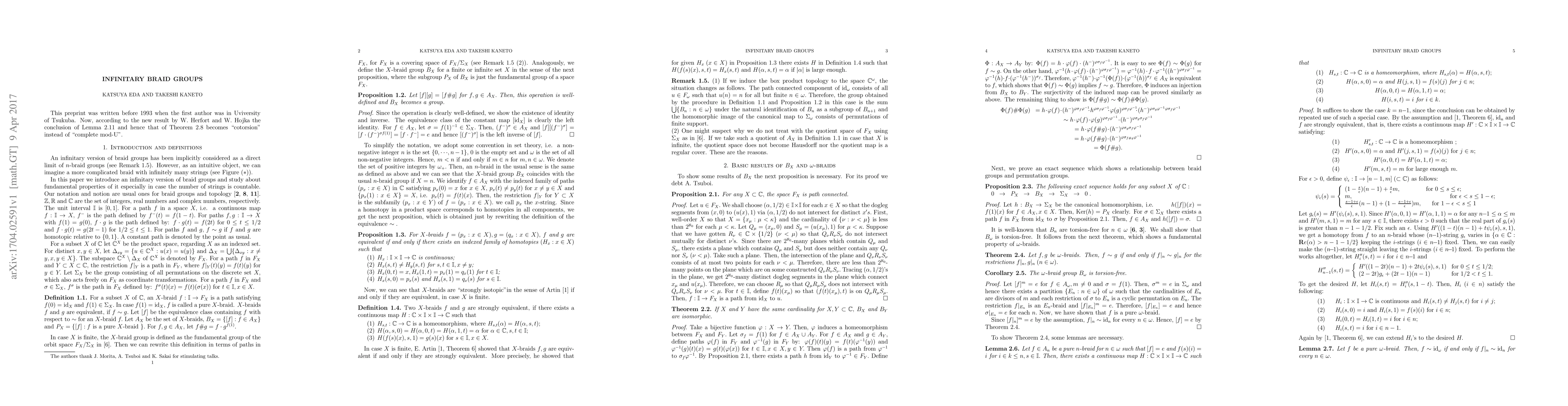 An infinitary version of braid groups has been considered as a direct limit of n-braid groups. However, we can imagine more complicated braids with infinitely many strings. We invetisgate basic properties especially when the number of strings is countable.