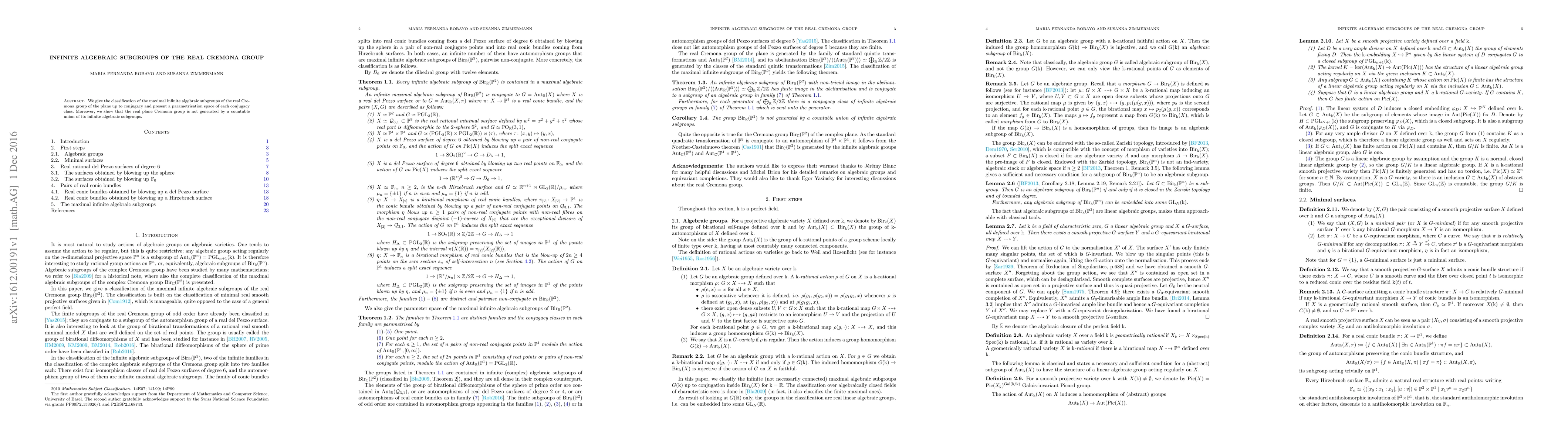 The paper employs a classification approach using algebraic geometry techniques, specifically focusing on the real Cremona group to identify and categorize its maximal infinite algebraic subgroups.