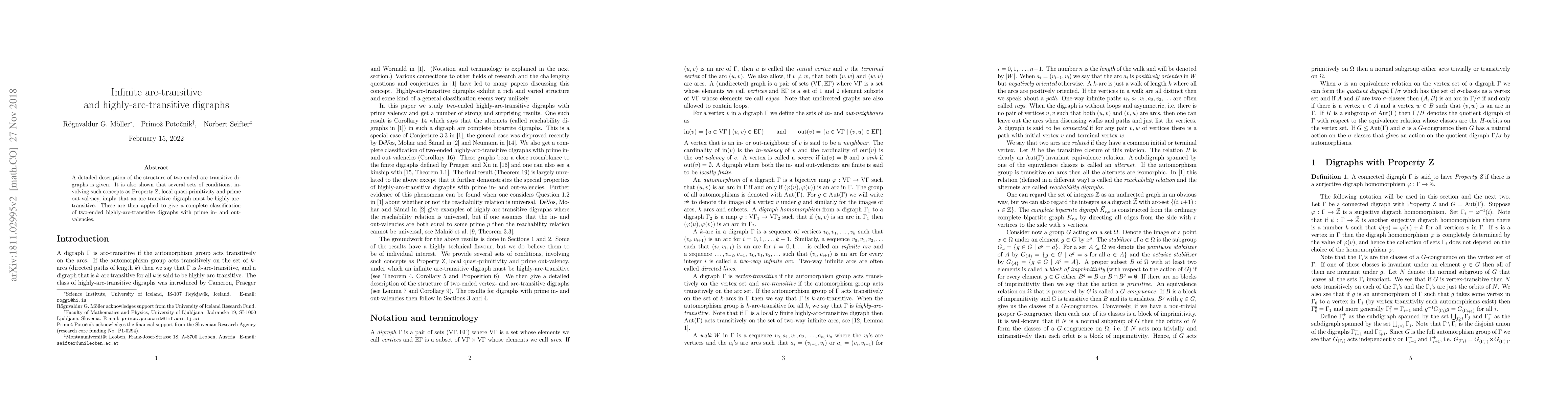 This paper investigates the structural properties of two-ended arc-transitive digraphs and demonstrates that conditions like Property Z and local quasi-primitivity lead to high arc-transitivity. It concludes with a full classification of two-ended highly-arc-transitive digraphs with prime valencies.