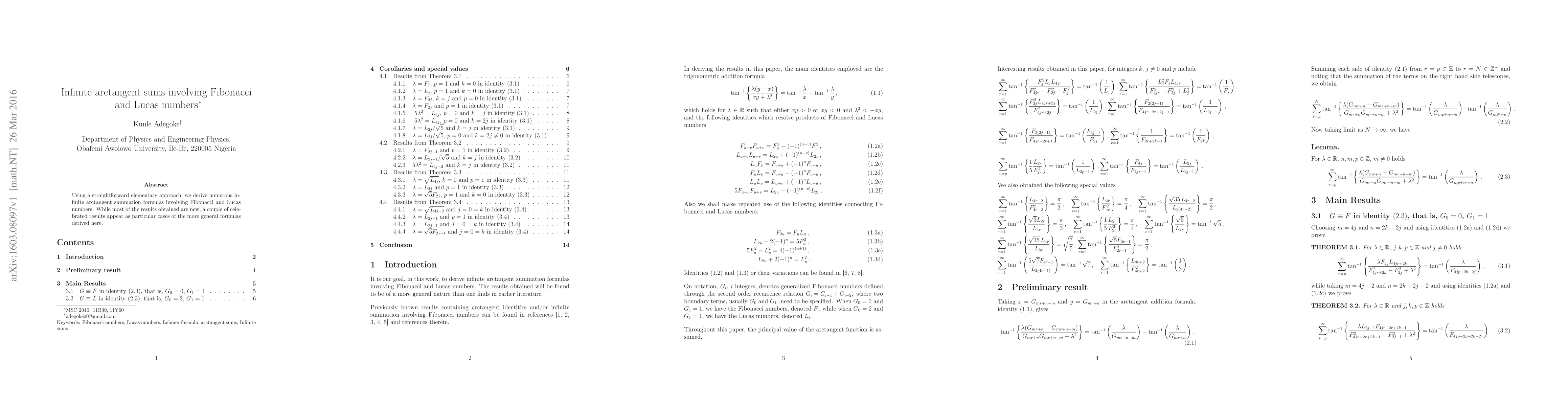 The paper presents a straightforward method to derive infinite arctangent summation formulas involving Fibonacci and Lucas numbers, expanding upon known results and providing new identities.