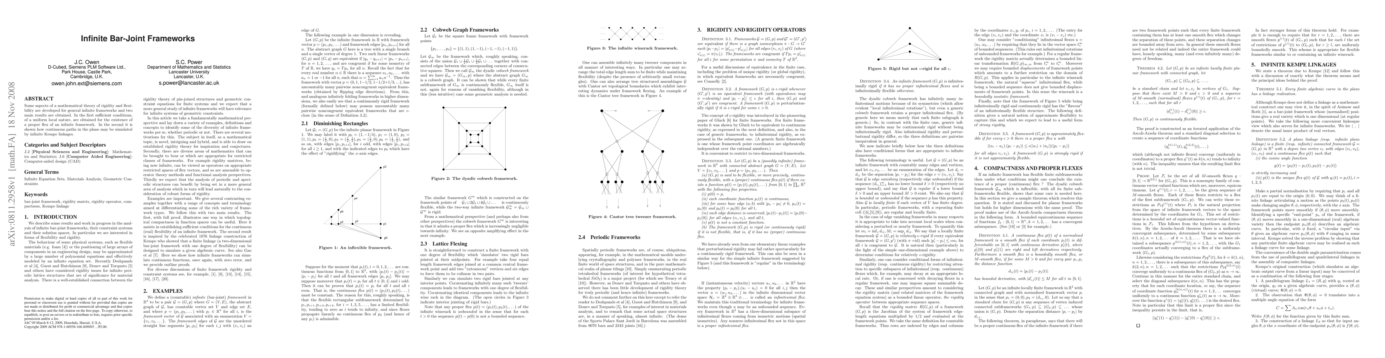 Some aspects of a mathematical theory of rigidity and flexibility are developed for general infinite frameworks and two main results are obtained. In the first sufficient conditions, of a uniform local nature, are obtained for the existence of a proper flex of an infinite framework. In the second it is shown how continuous paths in the plane may be simulated by infinite Kempe linkages.
