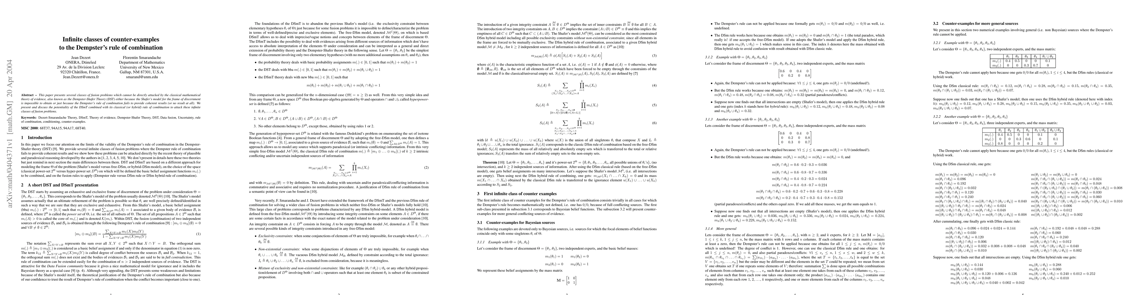 This paper identifies infinite classes of fusion problems where Dempster's rule of combination fails, highlighting the limitations of classical Dempster-Shafer Theory. It proposes the DSmT combined with its hybrid rule of combination as a potential solution for these issues.