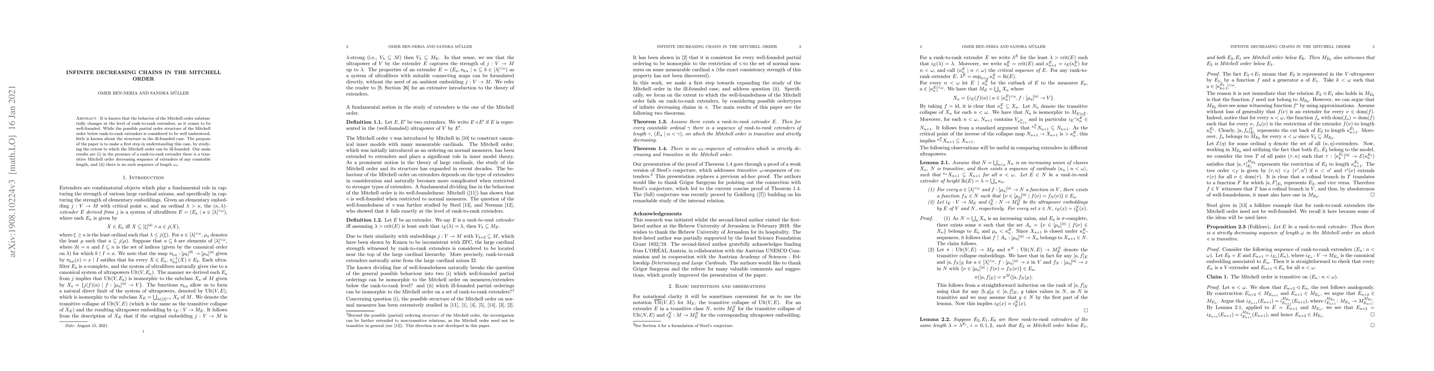 A research paper finds that in the Mitchell order, there is a transitive decreasing chain of extenders for any countable length but no such chain of length $oldsymbol{ extit{ iny{}}oldsymbol{o_1}}$ when it becomes ill-founded.
