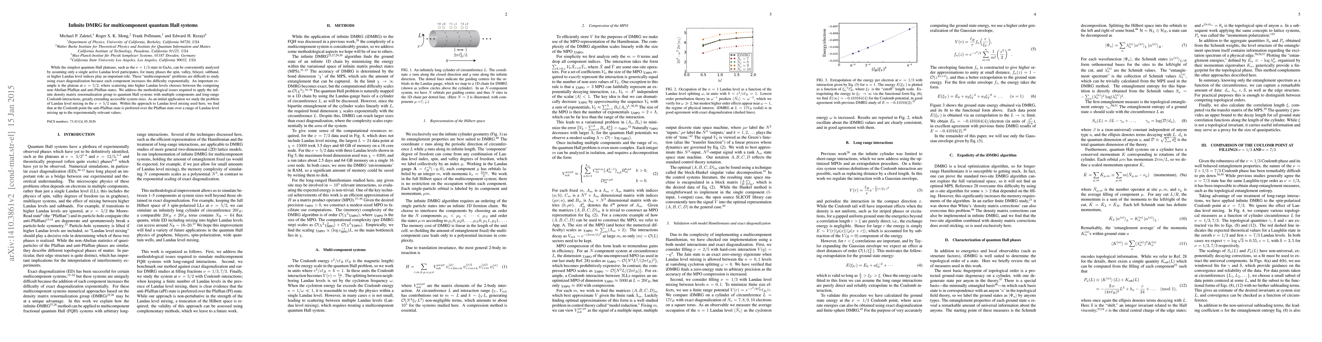 This paper develops the infinite density matrix renormalization group (iDMRG) method to study multicomponent quantum Hall systems, particularly focusing on the $\nu = 5/2$ plateau and its competing non-Abelian states. The authors find that the anti-Pfaffian state is favored over the Pfaffian state for experimentally relevant Landau level mixing values.