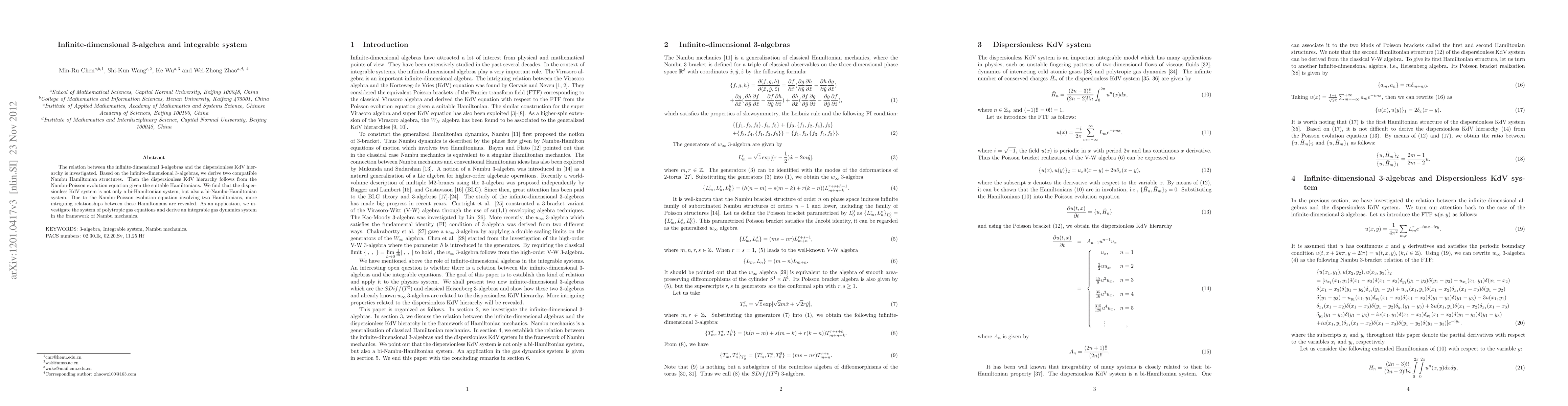 This research contributes to the understanding of integrable systems by establishing a connection between infinite-dimensional 3-algebras and the dispersionless KdV hierarchy, potentially opening new avenues for applications in physics.