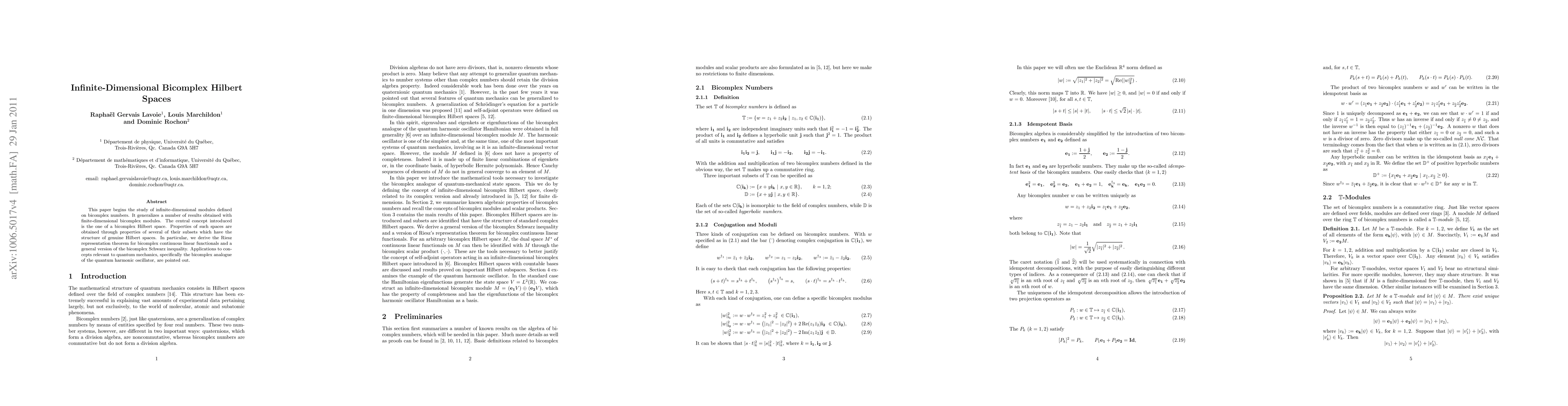 This paper generalizes finite-dimensional bicomplex module results to infinite-dimensional bicomplex Hilbert spaces, introducing the concept of bicomplex Hilbert space and deriving the Riesz representation theorem and a bicomplex Schwarz inequality, with applications to quantum mechanics.