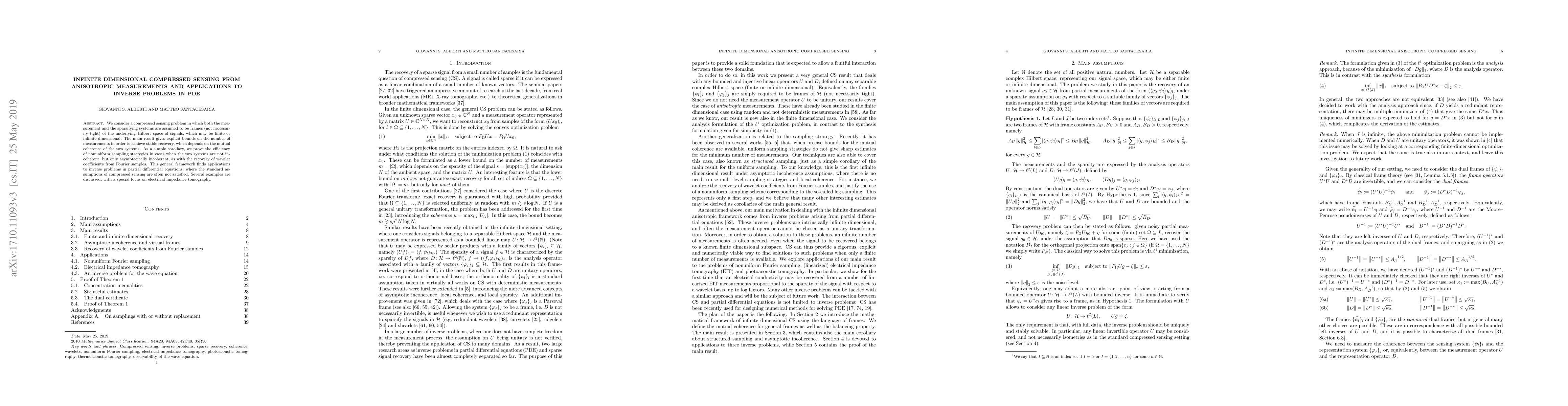 This paper develops a compressed sensing framework for infinite-dimensional signals using non-tight frames, providing explicit bounds on measurement numbers for stable recovery based on mutual coherence. It extends to inverse problems in PDEs, particularly highlighting the efficiency of nonuniform sampling in scenarios like electrical impedance tomography.