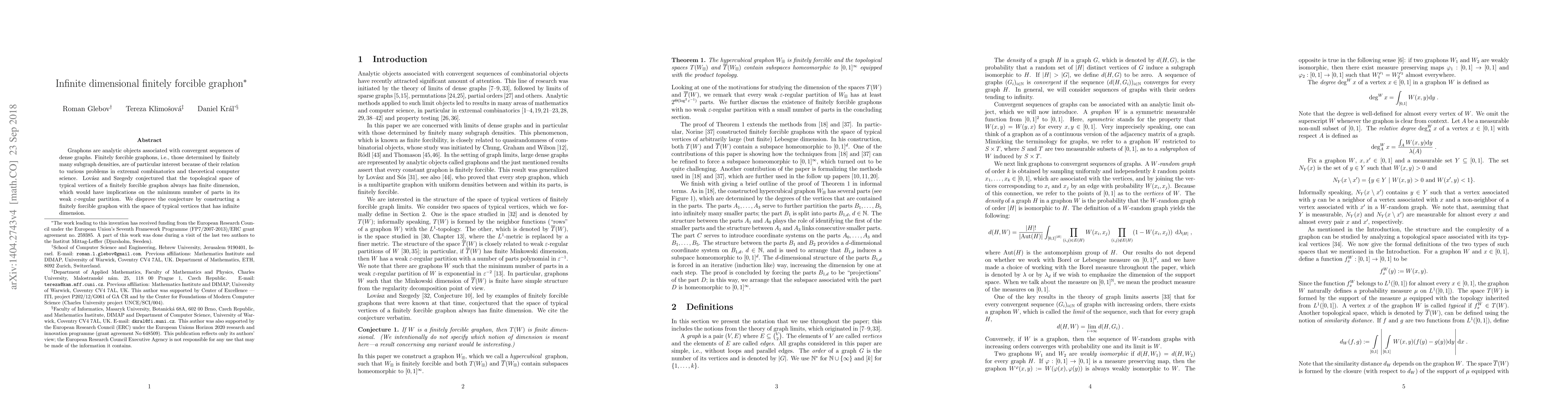 The paper disproves Lovász and Szegedy's conjecture that finitely forcible graphons have a finite-dimensional space of typical vertices by constructing an infinite dimensional finitely forcible graphon. This finding has implications for understanding the structure and complexity of graph partitions.