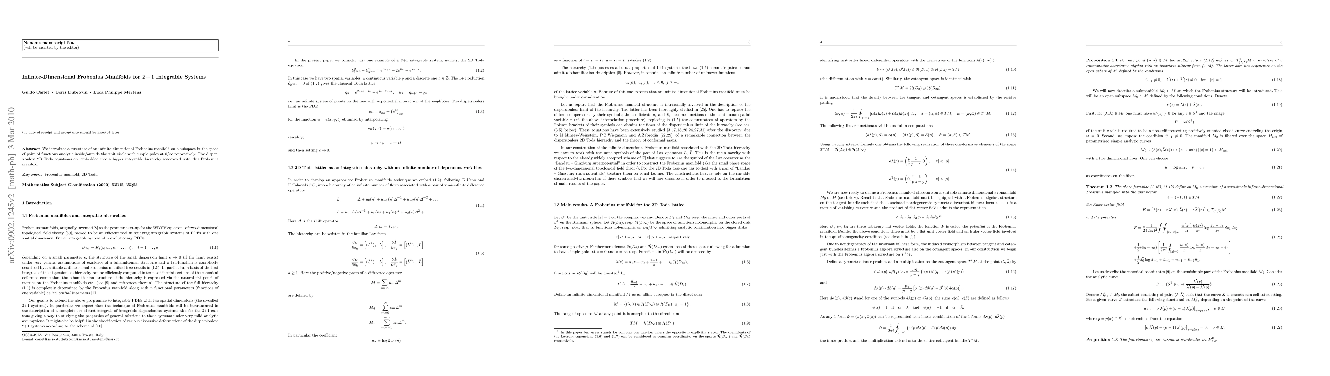 The paper presents a novel approach by extending Frobenius manifold theory to infinite dimensions, providing a new perspective on integrable systems and their geometric structures.