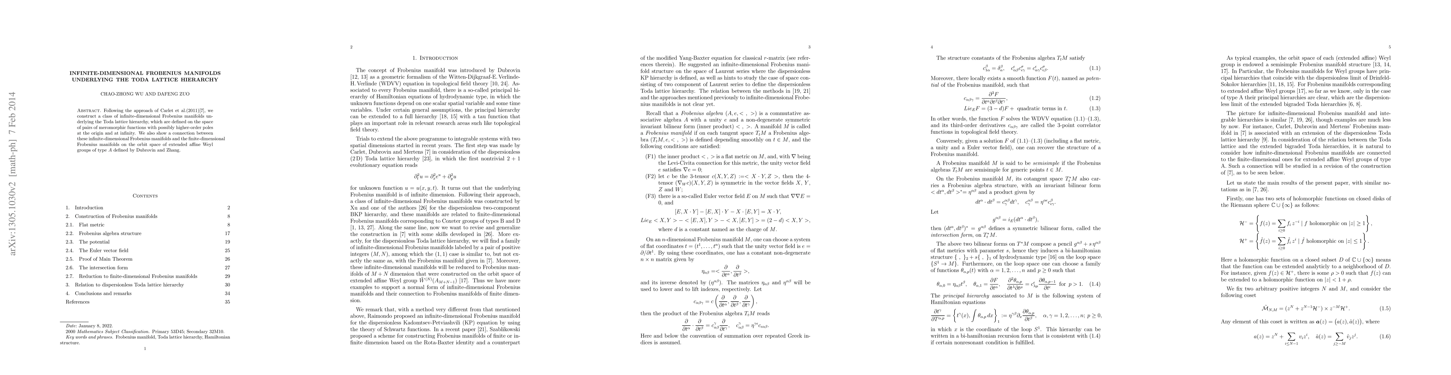 This paper constructs infinite-dimensional Frobenius manifolds associated with the Toda lattice hierarchy, defined on pairs of meromorphic functions with poles. It also establishes a link between these infinite-dimensional structures and finite-dimensional Frobenius manifolds related to extended affine Weyl groups of type $A$.