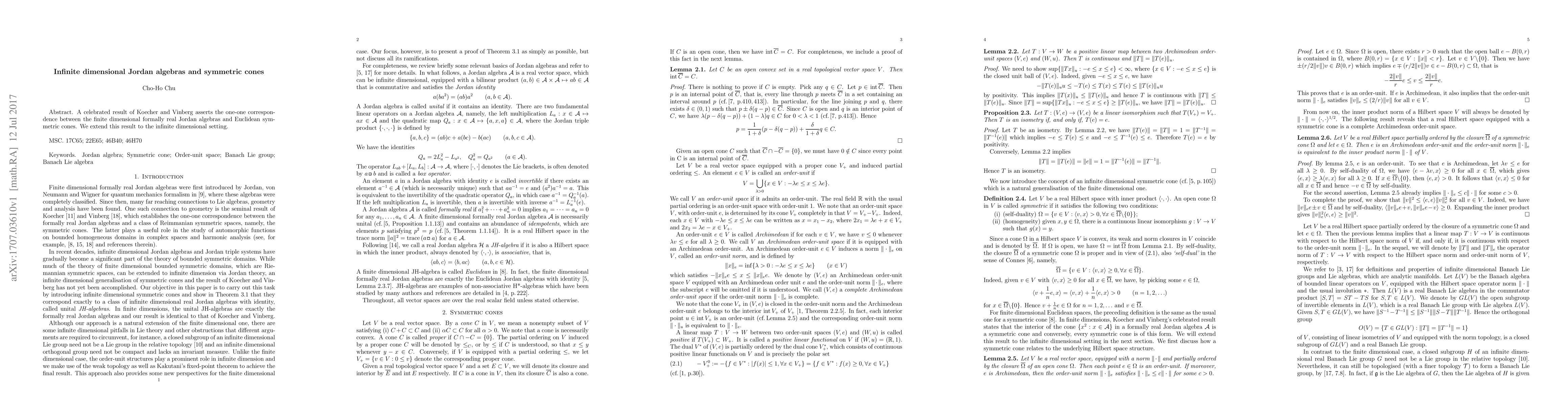 Summary: This paper extends the correspondence between finite dimensional formally real Jordan algebras and Euclidean symmetric cones to infinite dimensions, generalizing a celebrated result of Koecher and Vinberg. The study provides a new framework for understanding infinite dimensional Jordan algebras and their associated symmetric cones.