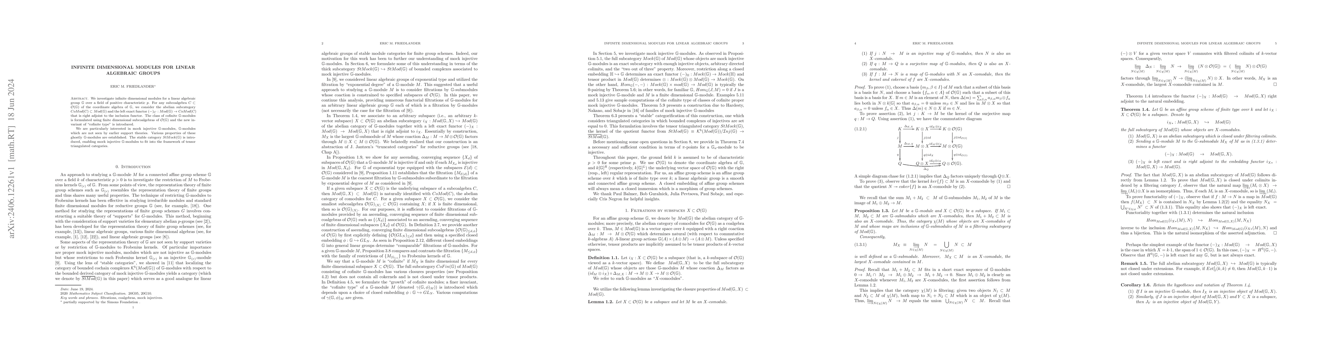 This paper explores infinite dimensional modules for linear algebraic groups in positive characteristic, focusing on a new invariant termed "cofinite type." It introduces mock injective modules, which are not captured by existing support theories, and establishes their properties within the stable category $StMock(\mathbb G)$.