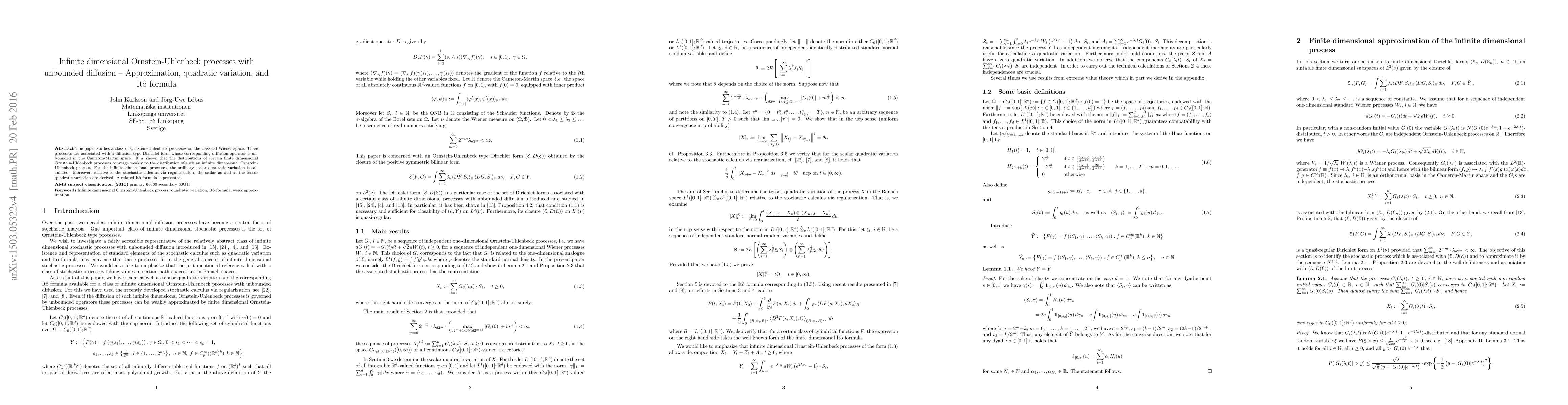 This paper investigates infinite-dimensional Ornstein-Uhlenbeck processes on Wiener space with unbounded diffusion, demonstrating weak convergence of finite dimensional approximations. It also computes the quadratic variation and derives an Itô formula for the infinite-dimensional case.