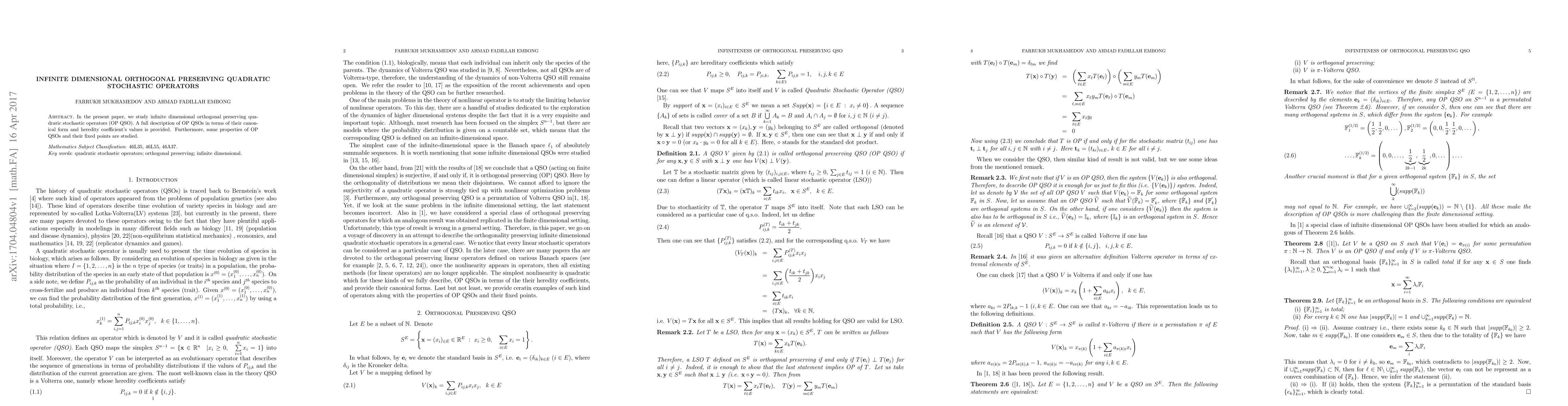 This paper investigates infinite dimensional orthogonal preserving quadratic stochastic operators (OP QSOs), detailing their canonical form and heredity coefficient values. It also explores properties and fixed points of these operators.