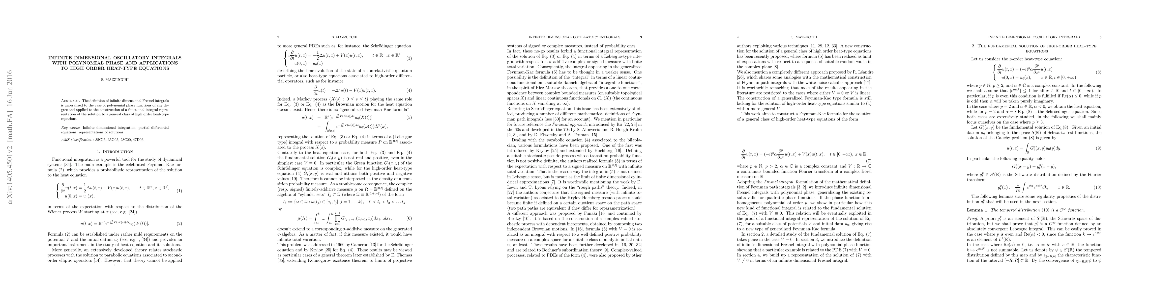 This paper generalizes infinite dimensional Fresnel integrals to polynomial phase functions and applies it to high order heat-type equations, providing a functional integral representation for solving these equations.