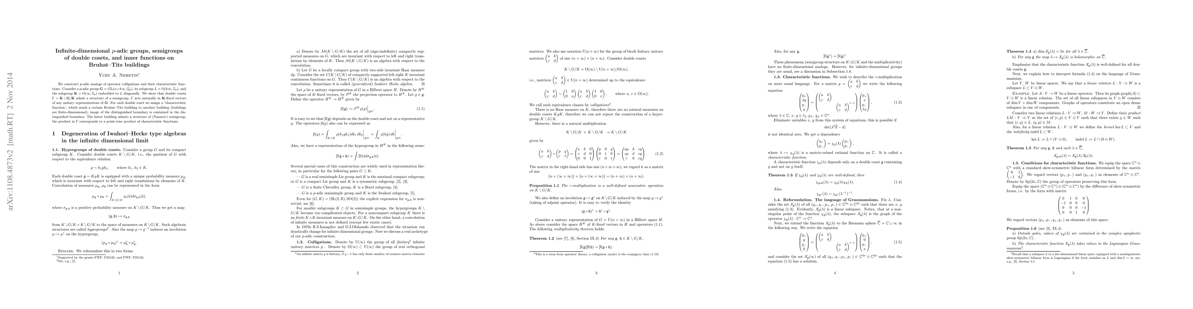 This research paper explores the properties of double cosets in $p$-adic groups, creating a semigroup structure from them and assigning characteristic functions to Bruhat--Tits buildings, which relate to unitary representations.
