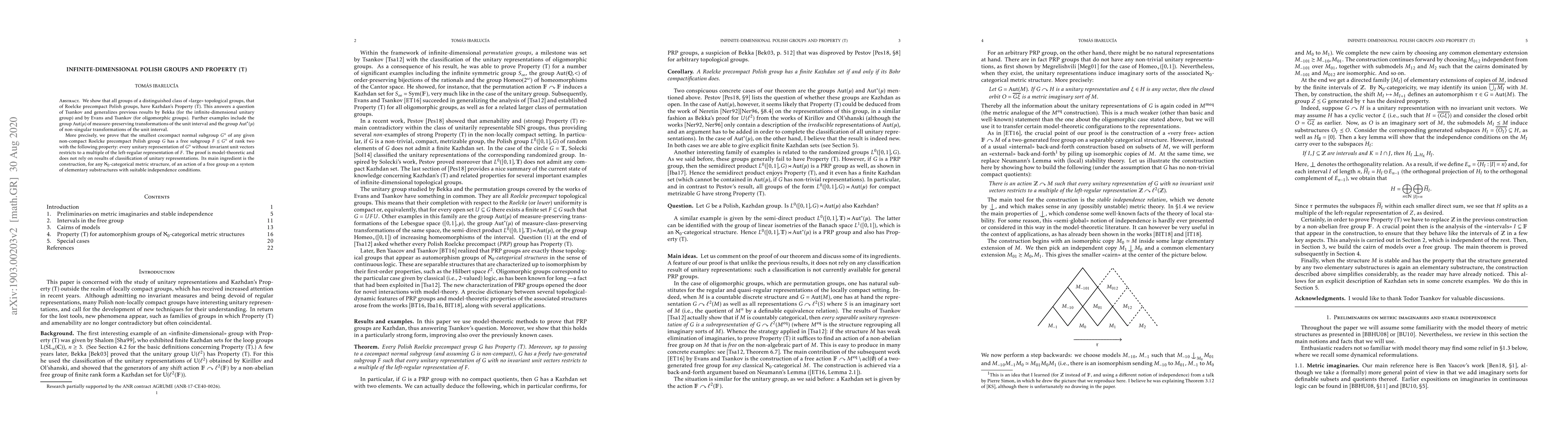 We show that all groups of a distinguished class of \guillemotleft large\guillemotright\ topological groups, that of Roelcke precompact Polish groups, have Kazhdan's Property (T). This answers a question of Tsankov and generalizes previous results by Bekka (for the infinite-dimensional unitary group) and by Evans and Tsankov (for oligomorphic groups). Further examples include the group $\operatorname{Aut}(\mu)$ of measure-preserving transformations of the unit interval and the group $\operatorname{Aut}^*(\mu)$ of non-singular transformations of the unit interval. More precisely, we prove that the smallest cocompact normal subgroup $G^\circ$ of any given non-compact Roelcke precompact Polish group $G$ has a free subgroup $F\leq G^\circ$ of rank two with the following property: every unitary representation of $G^\circ$ without invariant unit vectors restricts to a multiple of the left-regular representation of $F$. The proof is model-theoretic and does not rely on results of classification of unitary representations. Its main ingredient is the construction, for any $\aleph_0$-categorical metric structure, of an action of a free group on a system of elementary substructures with suitable independence conditions.