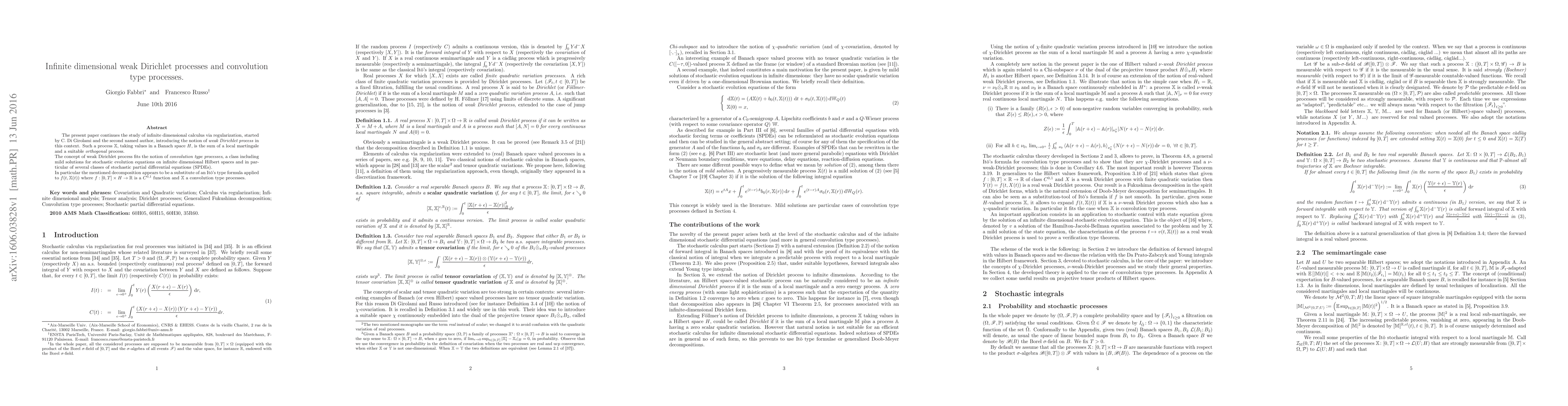 The paper develops the theory of weak Dirichlet processes in infinite dimensions and establishes their connection to convolution type processes, providing a novel framework for stochastic calculus in abstract Banach spaces.