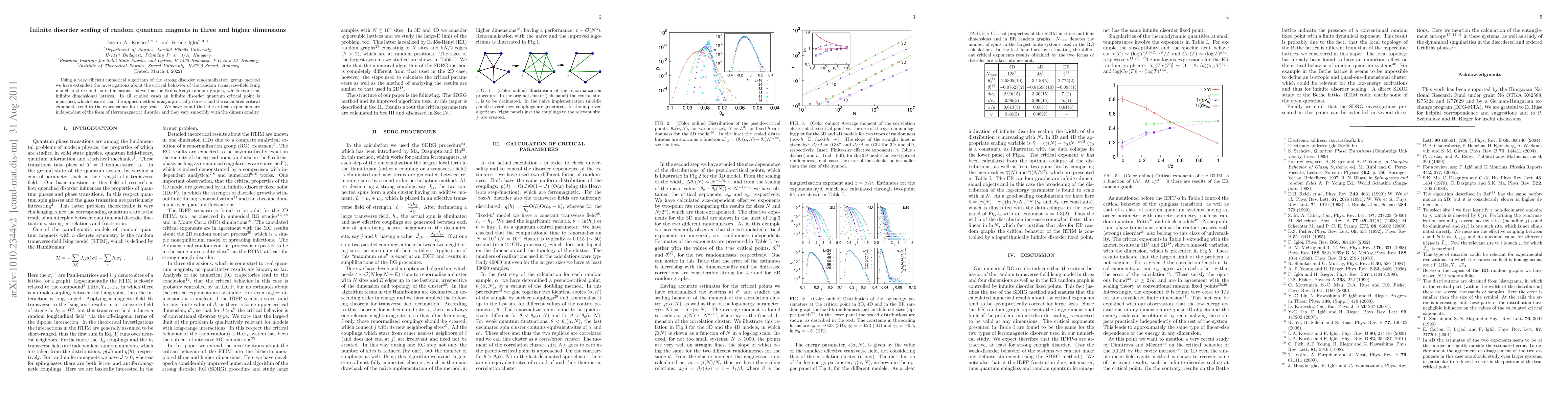 This study employs the strong disorder renormalization group method to investigate the critical behavior of random transverse-field Ising models in three and four dimensions, as well as Erdős-Rényi random graphs. The research identifies an infinite disorder quantum critical point, confirming the method's asymptotic correctness and revealing that critical exponents are independent of disorder form and vary smoothly with dimensionality.
