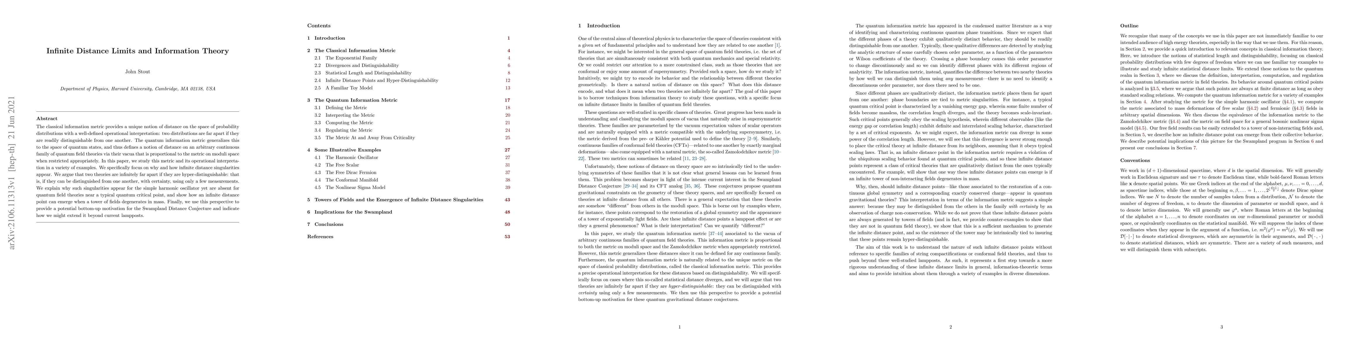 The classical information metric provides a unique notion of distance on the space of probability distributions with a well-defined operational interpretation: two distributions are far apart if they are readily distinguishable from one another. The quantum information metric generalizes this to the space of quantum states, and thus defines a notion of distance on an arbitrary continuous family of quantum field theories via their vacua that is proportional to the metric on moduli space when restricted appropriately. In this paper, we study this metric and its operational interpretation in a variety of examples. We specifically focus on why and how infinite distance singularities appear. We argue that two theories are infinitely far apart if they are hyper-distinguishable: that is, if they can be distinguished from one another, with certainty, using only a few measurements. We explain why such singularities appear for the simple harmonic oscillator yet are absent for quantum field theories near a typical quantum critical point, and show how an infinite distance point can emerge when a tower of fields degenerates in mass. Finally, we use this perspective to provide a potential bottom-up motivation for the Swampland Distance Conjecture and indicate how we might extend it beyond current lampposts.