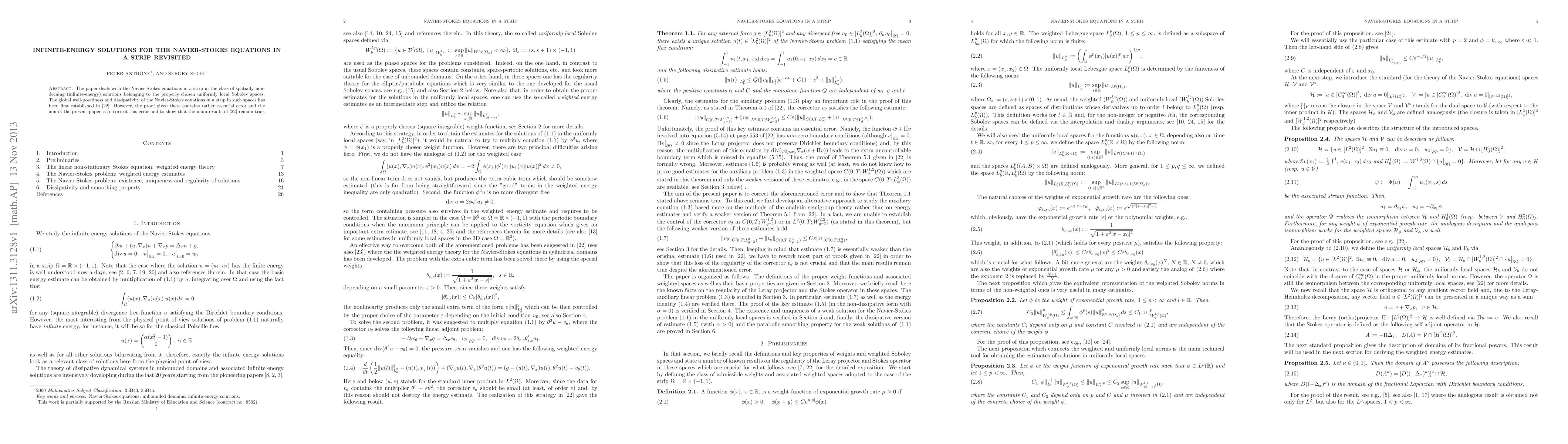 This paper corrects an error in the proof of global well-posedness and dissipativity of the Navier-Stokes equations in a strip for spatially non-decaying solutions, as initially established by Zelik in 2007, and reaffirms the main results.