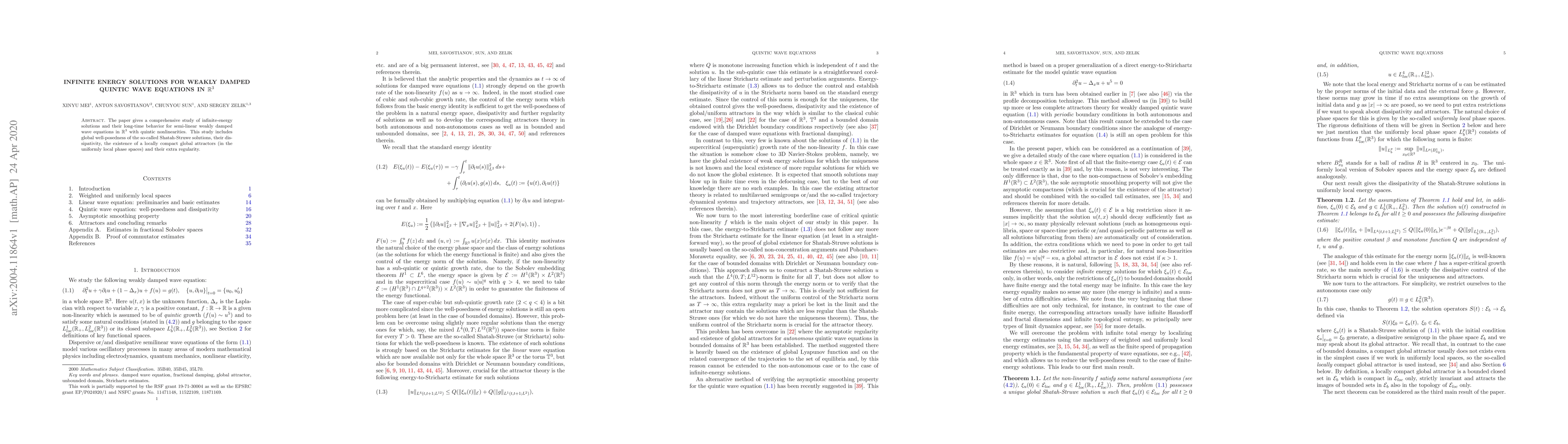 This research explores infinite-energy solutions for weakly damped quintic wave equations in three-dimensional space. It establishes global well-posedness, dissipativity, existence of locally compact global attractors, and their extra regularity for these solutions.
