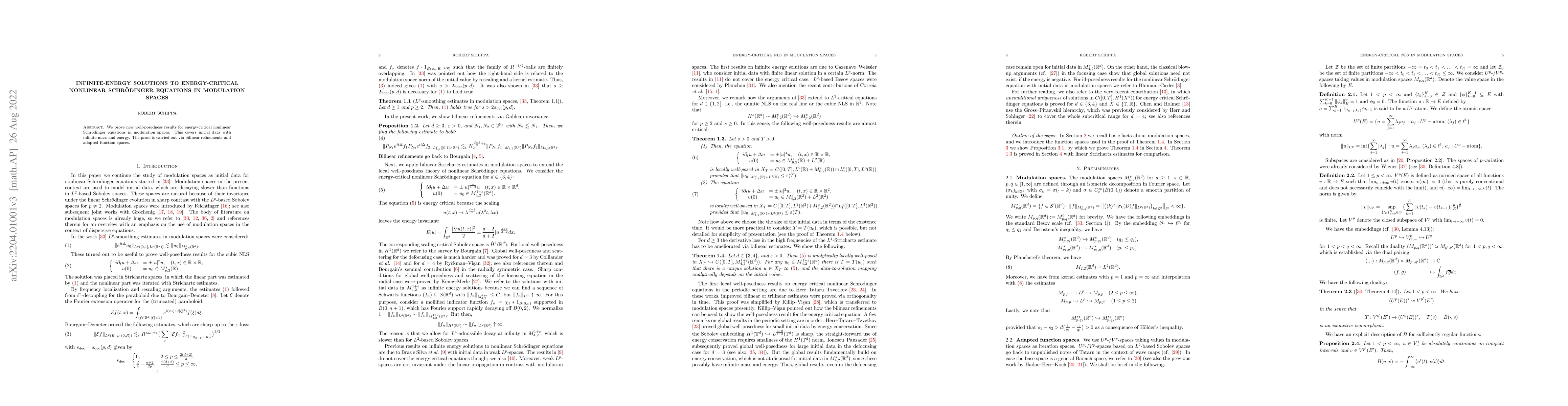 This paper establishes well-posedness for energy-critical nonlinear Schrödinger equations with initial data of infinite mass and energy, utilizing modulation spaces, bilinear refinements, and adapted function spaces. The results extend the applicability of these equations to previously unconsidered infinite-energy solutions.
