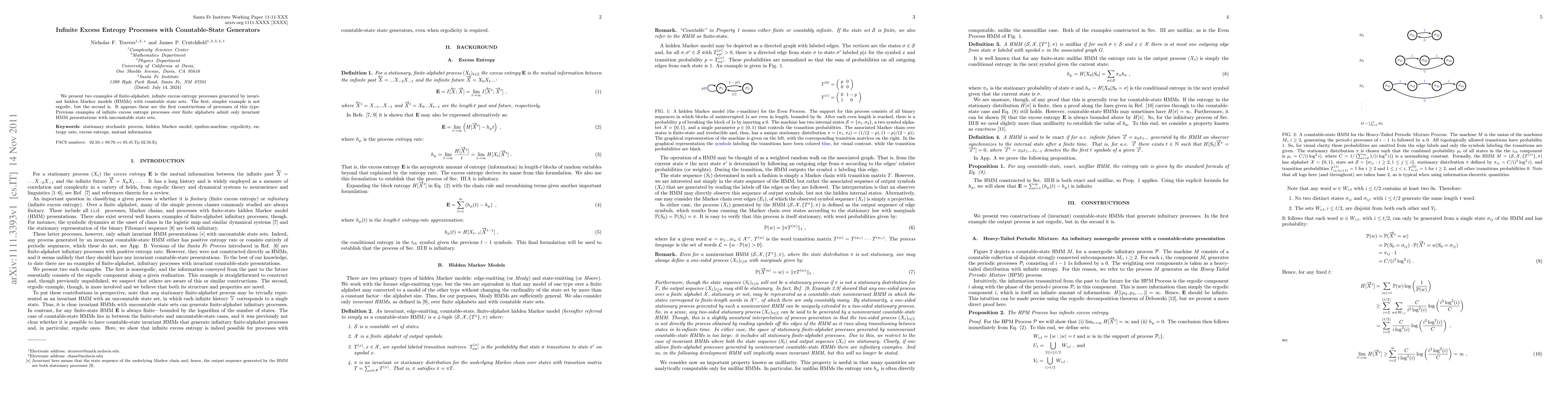 This paper introduces two examples of infinite excess entropy processes using countable-state hidden Markov models, with the second being ergodic. This contrasts with previous examples that required uncountable state sets, marking a significant advancement in the field.