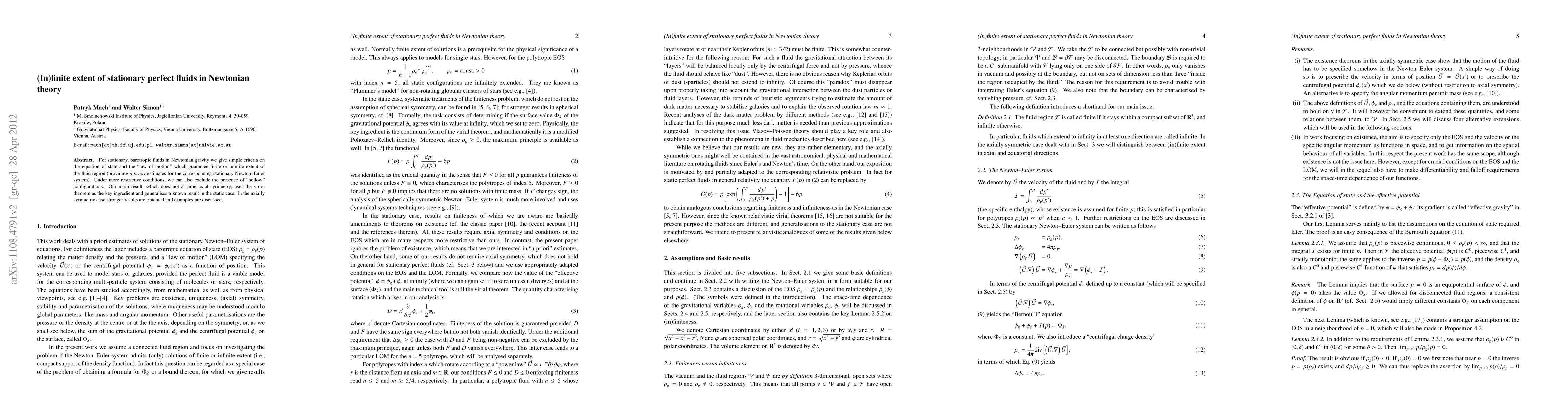 This paper provides criteria for determining whether stationary, barotropic fluids in Newtonian gravity have finite or infinite extent based on the equation of state and motion laws. The study uses the virial theorem to generalize static results and discusses stronger outcomes under axial symmetry.