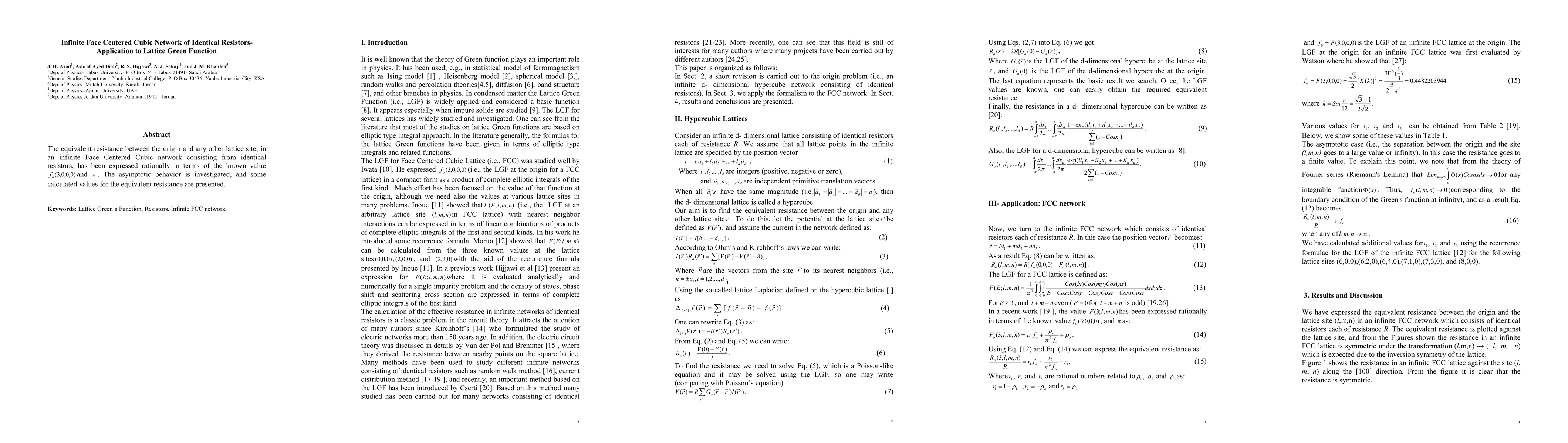 The equivalent resistance between the origin and any other lattice site, in an infinite Face Centered Cubic network consisting from identical resistors, has been expressed rationally in terms of the known value and . The asymptotic behavior is investigated, and some calculated values for the equivalent resistance are presented.
