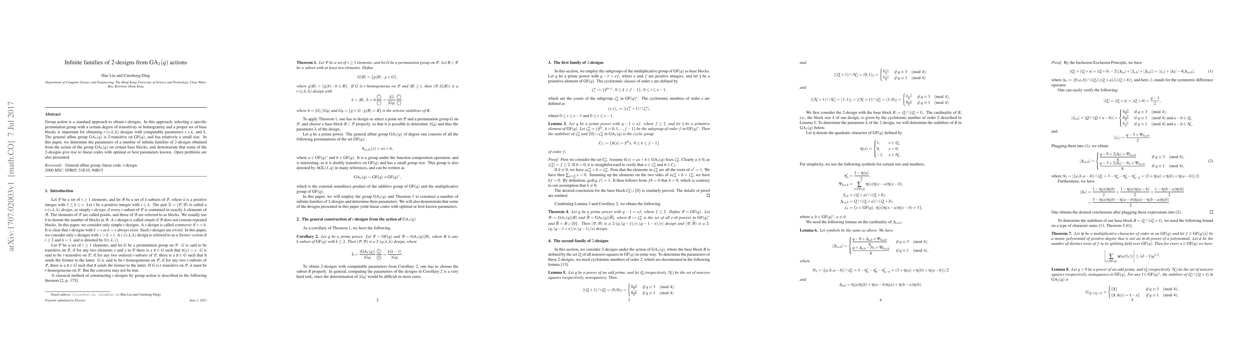 Group action is a standard approach to obtain $t$-designs. In this approach, selecting a specific permutation group with a certain degree of transitivity or homogeneity and a proper set of base blocks is important for obtaining $t$-$(v, k, \lambda)$ designs with computable parameters $t, v, k$, and $\lambda$. The general affine group $\GA_1(q)$ is $2$-transitive on $\gf(q)$, and has relatively a small size. In this paper, we determine the parameters of a number of infinite families of $2$-designs obtained from the action of the group $\GA_1(q)$ on certain base blocks, and demonstrate that some of the $2$-designs give rise to linear codes with optimal or best parameters known. Open problems are also presented.
