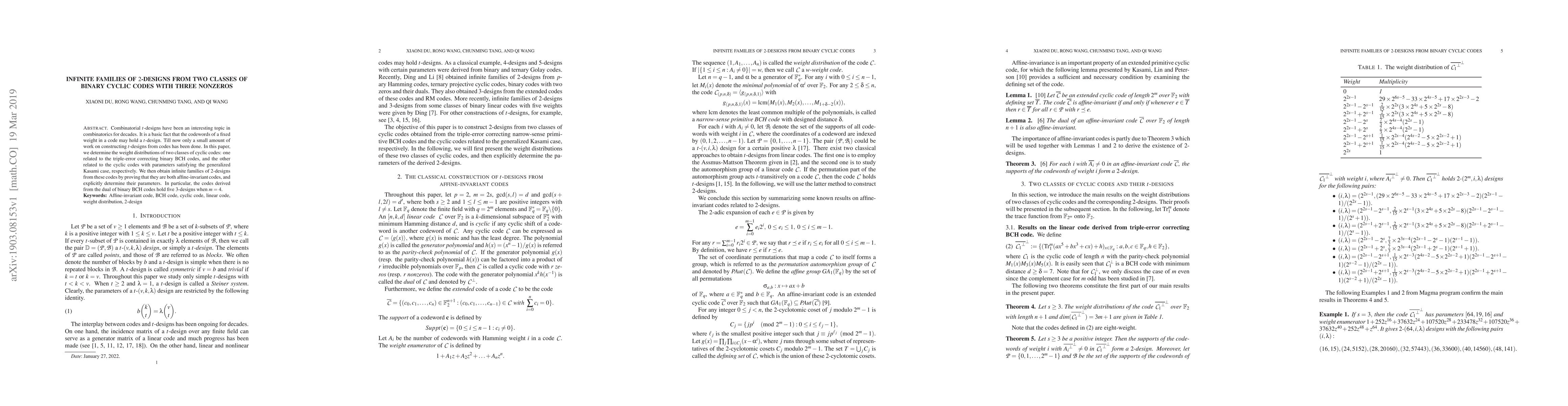 Combinatorial $t$-designs have been an interesting topic in combinatorics for decades. It is a basic fact that the codewords of a fixed weight in a code may hold a $t$-design. Till now only a small amount of work on constructing $t$-designs from codes has been done. In this paper, we determine the weight distributions of two classes of cyclic codes: one related to the triple-error correcting binary BCH codes, and the other related to the cyclic codes with parameters satisfying the generalized Kasami case, respectively. We then obtain infinite families of $2$-designs from these codes by proving that they are both affine-invariant codes, and explicitly determine their parameters. In particular, the codes derived from the dual of binary BCH codes hold five $3$-designs when $m=4$.