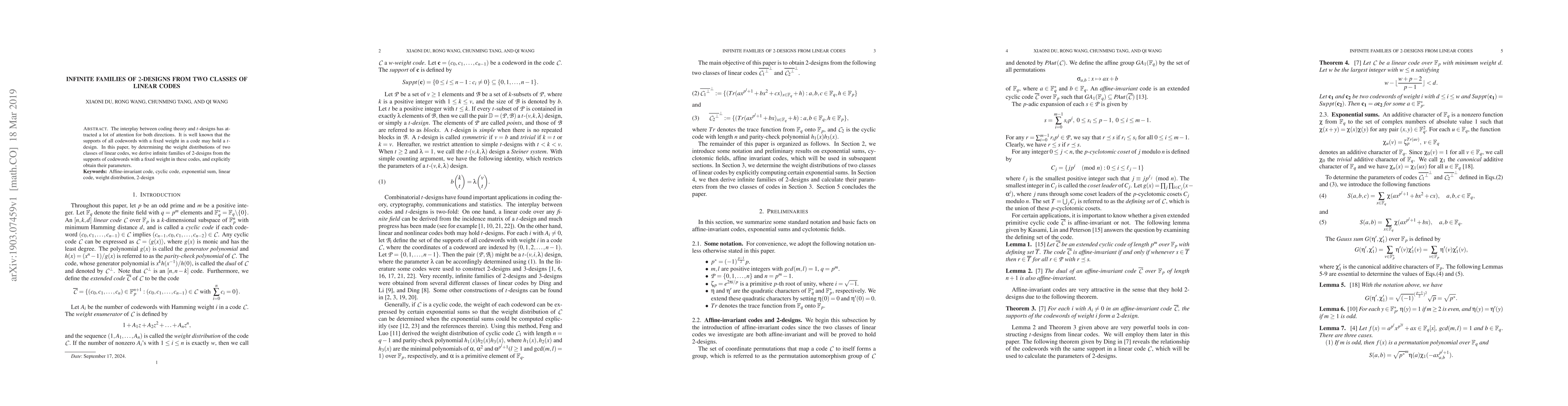 Researchers derive infinite families of 2-designs from two classes of linear codes by analyzing weight distributions of codewords with fixed weights.