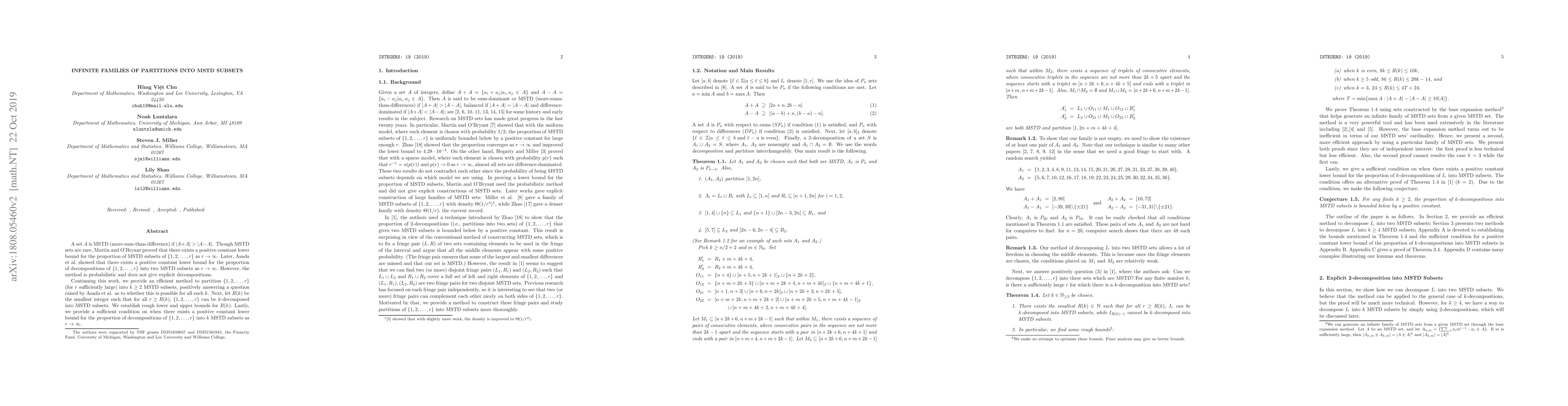 A set $A$ is MSTD (more-sum-than-difference) if $|A+A|>|A-A|$. Though MSTD sets are rare, Martin and O'Bryant proved that there exists a positive constant lower bound for the proportion of MSTD subsets of $\{1,2,\ldots ,r\}$ as $r\rightarrow\infty$. Later, Asada et al. showed that there exists a positive constant lower bound for the proportion of decompositions of $\{1,2,\ldots,r\}$ into two MSTD subsets as $r\rightarrow\infty$. However, the method is probabilistic and does not give explicit decompositions. Continuing this work, we provide an efficient method to partition $\{1,2,\ldots,r\}$ (for $r$ sufficiently large) into $k \ge 2$ MSTD subsets, positively answering a question raised by Asada et al. as to whether this is possible for all such $k$. Next, let $R(k)$ be the smallest integer such that for all $r\ge R(k)$, $\{1,2,\ldots,r\}$ can be $k$-decomposed into MSTD subsets. We establish rough lower and upper bounds for $R(k)$. Lastly, we provide a sufficient condition on when there exists a positive constant lower bound for the proportion of decompositions of $\{1,2,\ldots,r\}$ into $k$ MSTD subsets as $r\rightarrow \infty$.