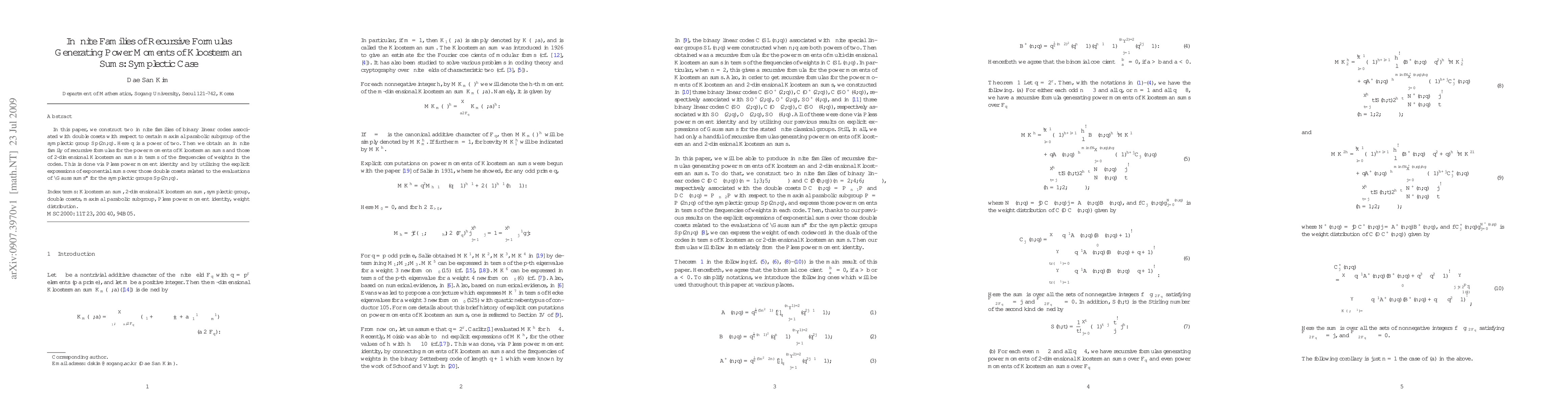 This paper constructs two infinite families of binary linear codes linked to double cosets in the symplectic group Sp(2n,q), and derives recursive formulas for the power moments of Kloosterman sums using the Pless power moment identity and evaluations of Gauss sums.