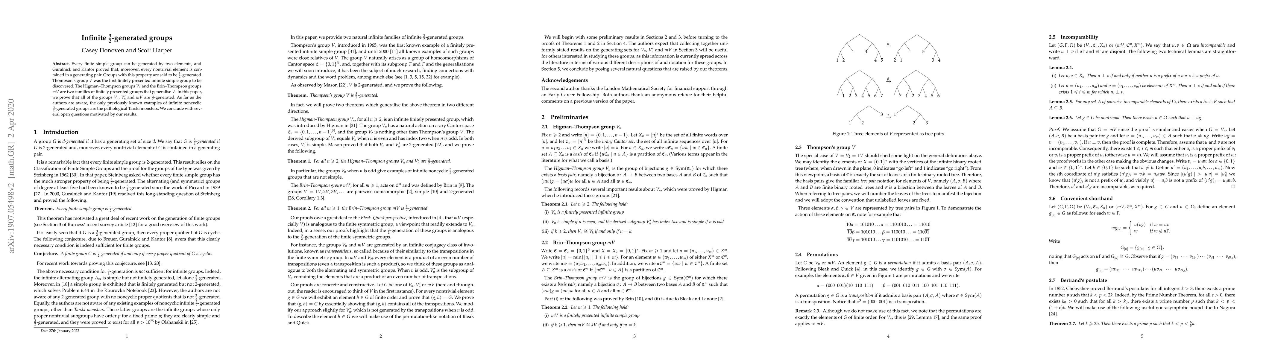 Every finite simple group can be generated by two elements, and Guralnick and Kantor proved that, moreover, every nontrivial element is contained in a generating pair. Groups with this property are said to be $\frac{3}{2}$-generated. Thompson's group $V$ was the first finitely presented infinite simple group to be discovered. The Higman--Thompson groups $V_n$ and the Brin--Thompson groups $mV$ are two families of finitely presented groups that generalise $V$. In this paper, we prove that all of the groups $V_n$, $V_n'$ and $mV$ are $\frac{3}{2}$-generated. As far as the authors are aware, the only previously known examples of infinite noncyclic $\frac{3}{2}$-generated groups are the pathological Tarski monsters. We conclude with several open questions motivated by our results.